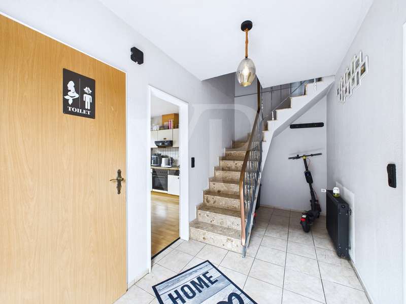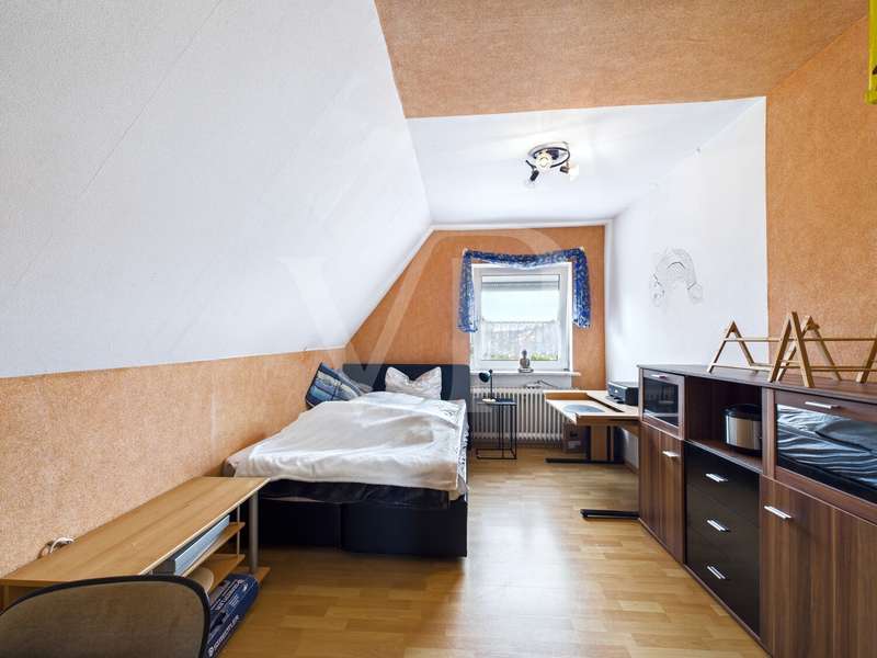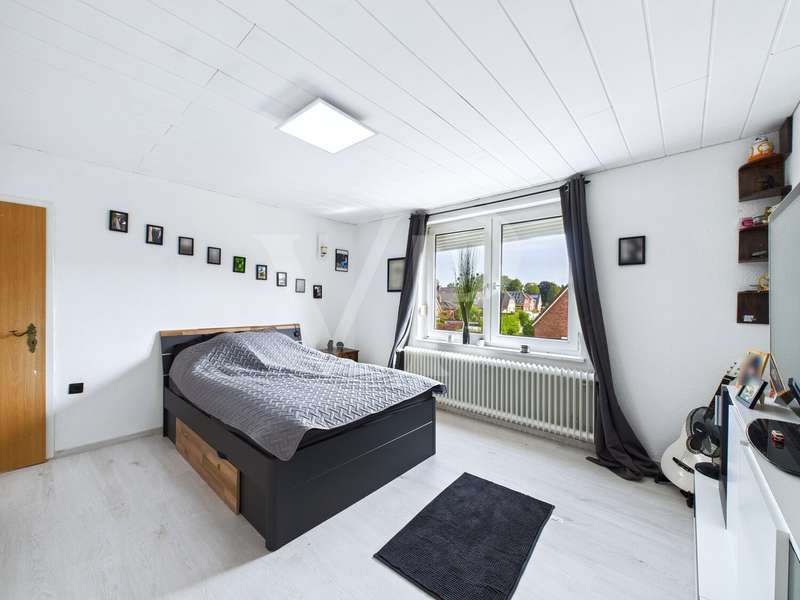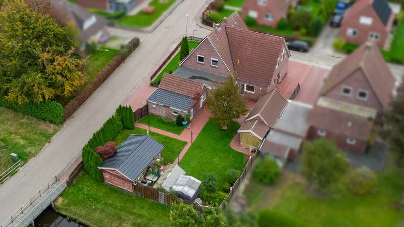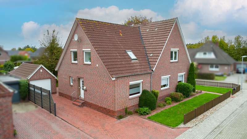 This charming two-family house, which was originally built in 1962 and extended in 1995 with a spacious extension, is situated in a quiet location in Osteel. With its flexible room layout, it is ideal both as a classic two-family house and as a multi-generational home - or simply as a spacious home for a family that appreciates plenty of room and scope for development. The first living unit in the main house impresses with its well thought-out interior design and pleasant living ambience. Immediately to the left of the entrance area is the kitchen, which provides direct access to the adjoining living room for an inviting living atmosphere. From here, a door that can be opened on both sides leads directly into the bedroom - practical and cozy at the same time. Along the corridor, a bathroom with shower and a separate guest WC open up on the right-hand side. At the end of the hallway, a small landing opens up into the conservatory, which impresses with its brightness and spaciousness. Here you will not only find space to relax, but also a utility room for added convenience. A door in the conservatory provides direct access to the adjoining garage - short distances are guaranteed. The second residential unit, which was created with the extension in 1995, also boasts a pleasant layout. From the entrance area, the path to the left leads into a small guest WC and directly into the kitchen, which forms the heart of the apartment. Opposite the kitchen is the living room, which is an ideal meeting place for the whole family thanks to its brightness and coziness. The upper floor offers a variety of possible uses. To the right of the staircase is a children's room, which is also perfect as an office or guest room. Next to it is a utility room, followed by a bathroom and a practical storage room. Opposite are three bedrooms, which can be used in different ways thanks to their size and flexible layout - from a master bedroom to a children's room to a home office. There are connections between individual rooms, making the floor plan particularly versatile and enabling short distances. The outdoor area of this property also has a lot to offer: A spacious garden with a greenhouse invites you to garden, while a rustic log cabin with a covered outdoor area is perfect for socializing with family and friends. Two garages, a workshop extension and additional storage facilities round off the offer and leave nothing to be desired. This property combines the charm of past decades with practical extensions, making it ideal for a large family or for anyone who wants to combine living and working under one roof. If you are looking for a house with character, lots of possibilities and a beautiful plot, you will find it here in Osteel.