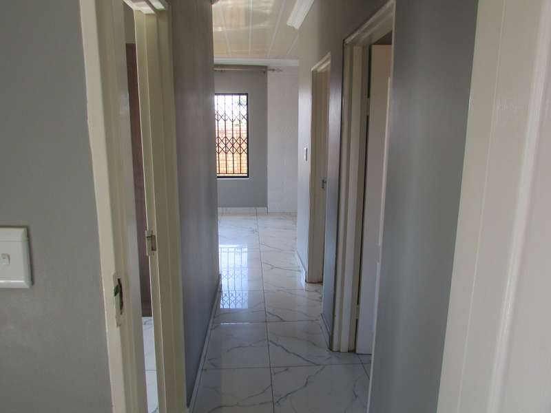 Another lovely property in Emerald Fields Estate arrived in Westonaria. A great starter and close to all amenities.!!! The property is modern and neatly tiled throughout. Consist of 3 Sunny bedrooms with build in cupboards. 2 Bathrooms one main on suite with a shower, basin and toilet. A Spacious open plan reception area with a kitchen and fittings for washing machine. Decorative security bars in front of all windows with security doors. Property fully fenced with own garden area. Pre paid power. WHAT A GREAT START!!!!!!LETS VIEW!!!