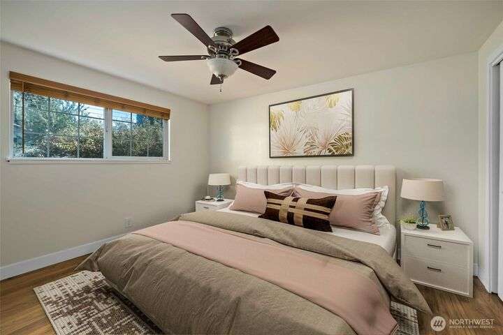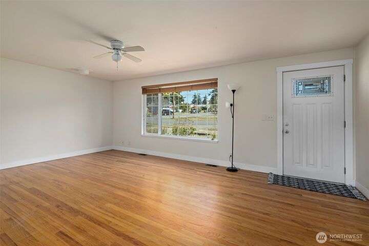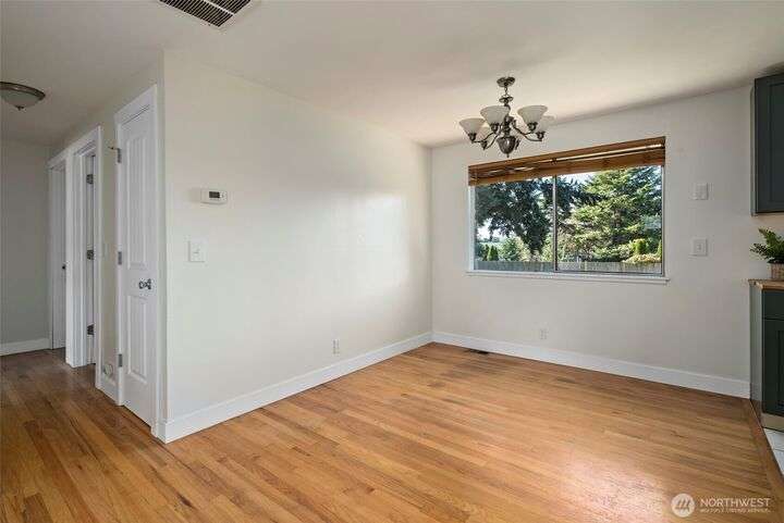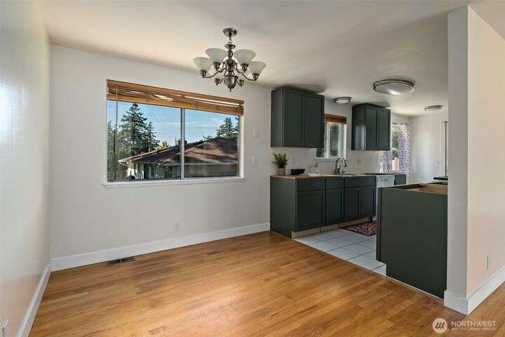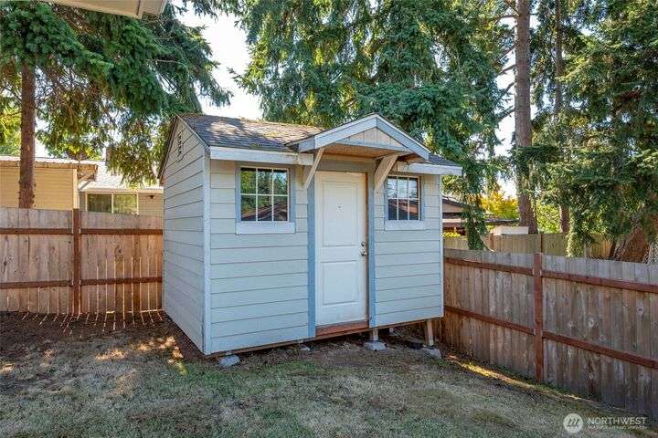 Countertops being installed since photos! They are gorgeous! We are finishing up kitchen within a week or two. Hopefully you can see the vision, and come take a look at our progress. You will get a brand new kitchen and a lovely starter home or investment property. Real hardwood floors make this home feel warm and solid. Primary bedroom is a great size and can fit your queen or even king size bed if you want! Fenced back yard is easy for play and shed and garage are easy for extra storage. Corner lot gives you elbow room with a gorgeous mature maple tree and two young apple trees in front. Just a few blocks from two small parks (Sumner & Tyhuis), restaurants on Midway Blvd, and easy access to Hwy 20 or NAS Whidbey.