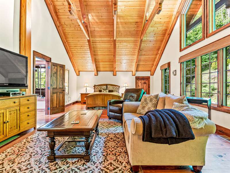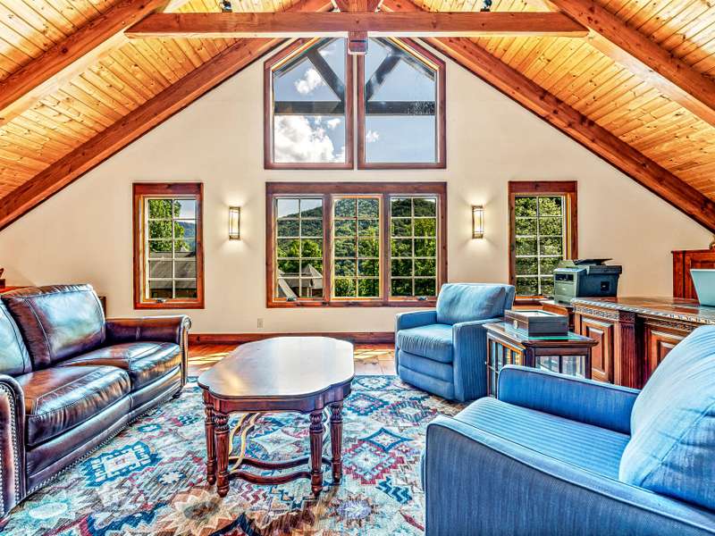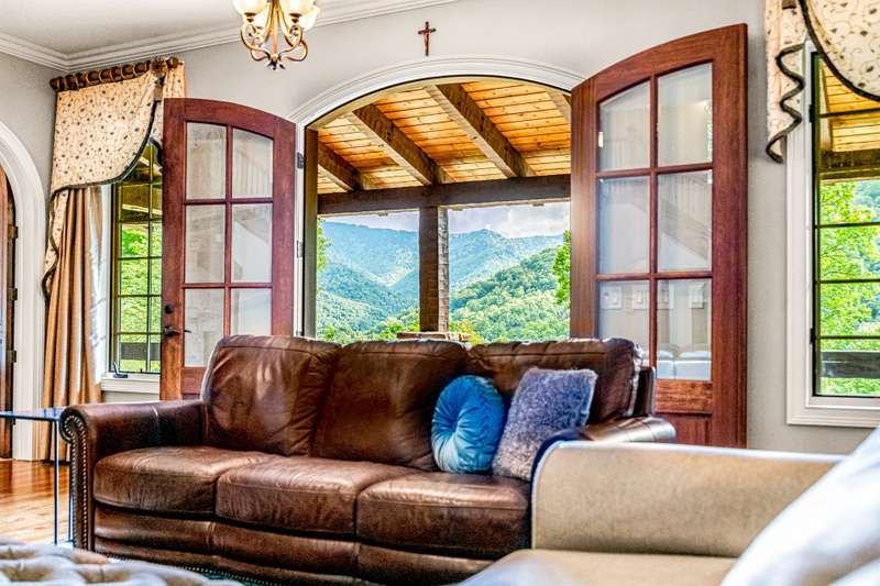 202 Emerald Lane stands as a testament to quality, where stunning views and luxury coalesce. At 3400' in elevation, your sanctuary reflects the grandeur of the surrounding mountains, offering the uncommon combination of southern exposure and cool breezes. Accessed by two easy turns off a state-maintained road, it delivers casual living for two on the main level, and easily scales up for a few or numerous guests. The guest house offers a dramatic retreat within a retreat. The cost to reproduce this home greatly exceeds the list price (confirmed by recent insurance estimate). The luxury destination, Cataloochee Ranch awaits moments away. Spontaneously enjoy dining, shopping, hiking, biking, skiing, fishing, and Harrah's Cherokee Casino (15 miles). Asheville is an easy drive, while Maggie Valley and Waynesville beckon with nostalgia. Included is a .82 lot with well installed, + 2 BR septic permit on file. Perfect for add'l home, pool, etc. Ideal for a wedding/event venue, luxury vacation rental, or even a spiritual refuge.