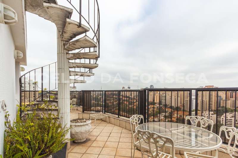 Maravilhosa cobertura com espetacular vista panorâmica da cidade. São mais de 800 m² de área útil, no charmoso bairro de Higienópolis. Edifício Mont Blanc, alto padrão, com lazer completo. Elevador chega aos dois andares, proporcionando conforto e agilidade. São seis vagas, dois depósitos, no primeiro piso ficam as quatro suítes, muito amplas, sendo que a master possui lareira e vasta varanda e family room. Piso superior possui ala social com lindo vitral na entrada, sala de estar, jantar, de música com bar, living com lareira, churrasqueira e sala de almoço envidraçada, com vista para a linda piscina. Agende uma visita exclusiva.