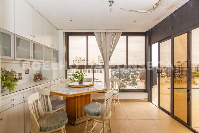 Cobertura no bairro Higienópolis com 836m² área privativa/útil, 4 dormitório(s), 4 suíte(s), 6 vaga(s), 6 banheiro(s), piscina, churrasqueira, terraço, depósito, duplex, ar condicionado, dep. de empregados, reformado (a), pé direito duplo.