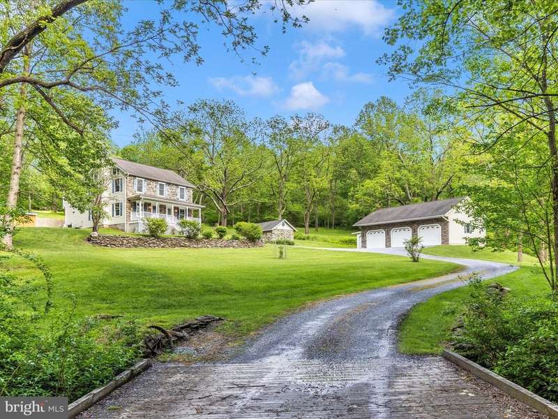 Middletown Schools! Move-in ready home nestled on private acreage. This beautifully updated property offers the perfect blend of comfort, functionality, and natural beauty-ideal for landscapers, car enthusiasts, or anyone who dreams of hunting or enjoying the outdoors on their own land. The charming stone-front home welcomes you with a spacious, maintenance-free front porch and a peaceful back patio-perfect for relaxing and soaking in the surrounding nature. A picturesque creek winds through the property, complemented by your very own pond. You'll also find a covered wood storage area to keep your firewood dry, plus a quaint spring house that adds rustic character. Inside, you'll immediately notice the meticulous care and recent updates. The kitchen features rich 42"" cherry cabinets, gleaming granite countertops, and modern finishes. Gather around the cozy wood stove in the inviting family room. The entire home has been deep-cleaned, freshly painted, and the carpets professionally cleaned for a truly move-in ready experience. Upstairs, the expansive owner's suite offers a luxurious retreat with a spa-like bath, including a beautifully tiled shower, jetted tub, water closet, dual vanities, and a generous walk-in closet. The secondary bedrooms are equally spacious and share a tastefully updated hall bath. The lower level is unfinished and ready for your personal vision-whether it's a home gym, workshop, or extra living space. A state-of-the-art water treatment system ensures clean, great-tasting water throughout the home. Don't miss your chance to own this one-of-a-kind property that combines comfort, nature, and practicality. Homes like this don't stay on the market long-schedule your visit today before someone else calls it home! GPS WILL GET YOU LOST. PUT IN THE ADDRESS OF 10443 GRINDSTONE RUN RD TO GET YOU THERE