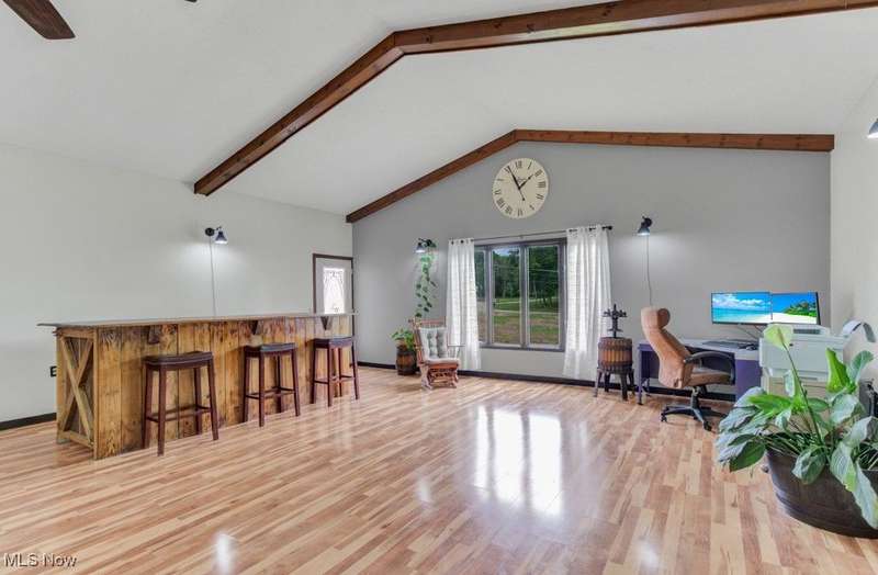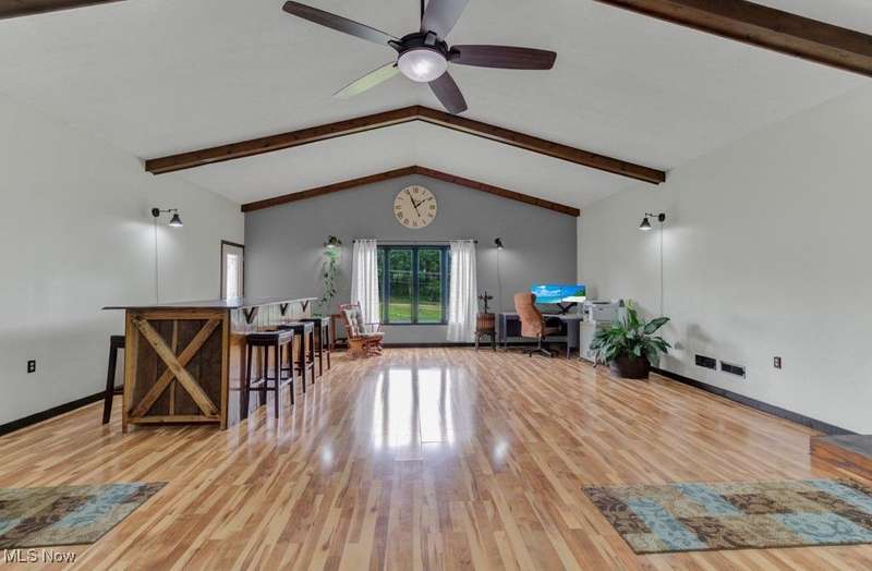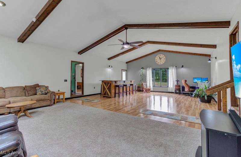 This spacious and updated property is a rare find in Malvern, Ohio! Sitting on 16 acres, this home offers flexibility and smart updates throughout. The main floor includes 3 bedrooms, 1.5 baths, the cathedral beamed ceilings add charm and character to the large living area, and an eat-in kitchen with peninsula. A bonus mudroom/flex room adds potential for office, playroom, or storage. Downstairs, you'll find a large family room, laundry, and an additional full bath?perfect for multi-generational living or entertaining. The garage space is unmatched: an attached 45 car garage, heated, finished, and equipped with a floor drain, plus a 40 X 74 detached outbuilding with electric and a concrete floor. Enjoy easy access to the backyard via three different exits, including a stone patio area off the main living area, kitchen walkout, and back door access?ideal for enjoying the above-ground pool and yard. Less than a mile from Lake Mohawk, a gated community with a 500 acre lake and unlimited horse power. Purchase a vacant lot for lake access and enjoy the best of both worlds! Key updates: Roof, Sky Lights, Furnace, and Central Air (2020); Septic (2018) New hot water heater (2025). Also includes woodburner and electric baseboard zone heating. House does have free natural gas, just isn't hooked up to it, but is ran to the house. Don't miss this unique, well-maintained property that offers space, flexibility, and functionality?inside and out!