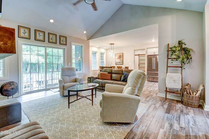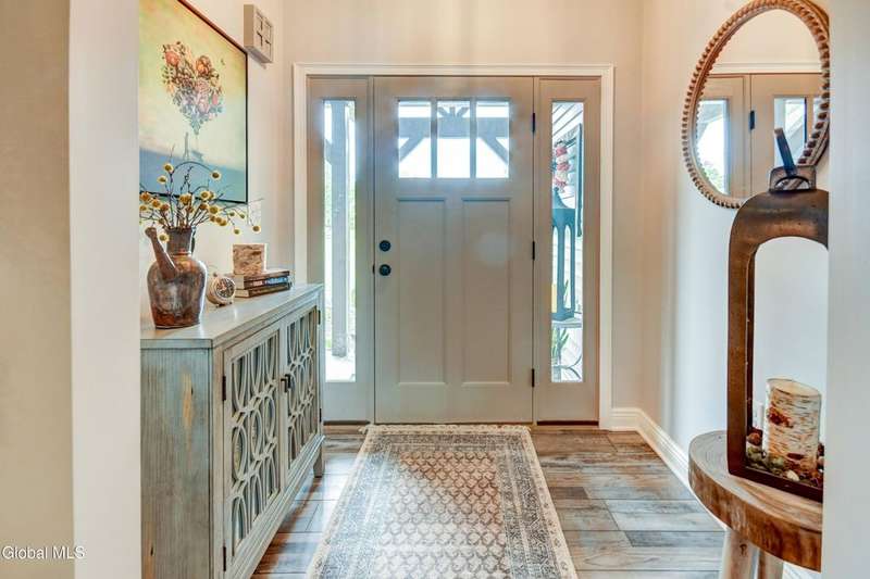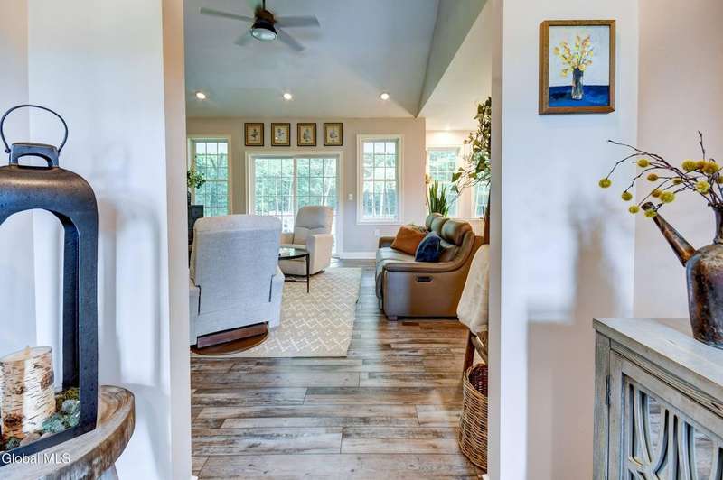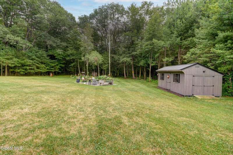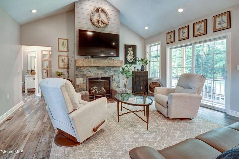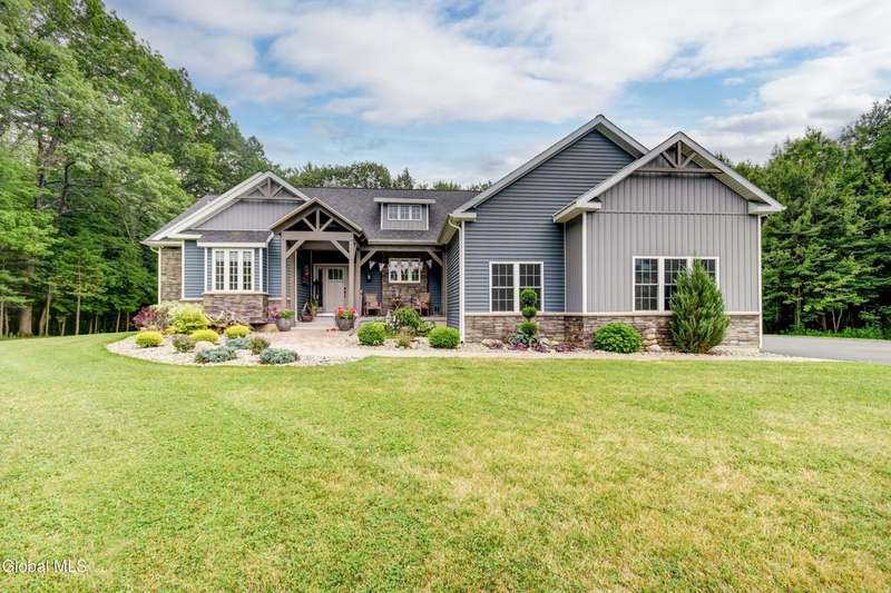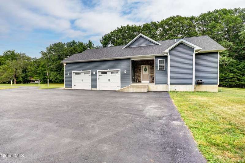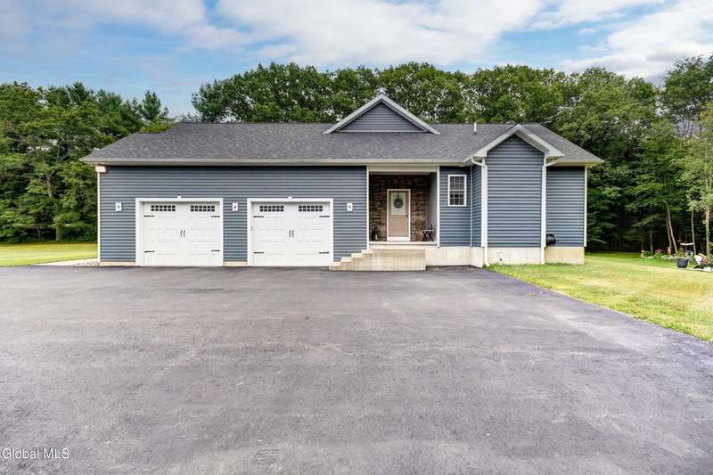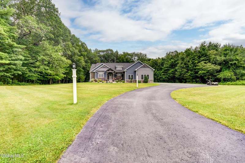 +1.5 private acres in the Guilderland School District, this 1,800 sq ft 3-bed, 2-bath custom Craftsman-style ranch offers comfort and space in a serene setting. A long private driveway leads to a charming one-story home featuring a warm living room with gas-burning fireplace, spacious eat-in kitchen, and generous bedrooms. Enjoy the convenience of public water/sewer and an oversized 2-car garage. Surrounded by trees, yet minutes to shopping, schools, and highways?this home blends quiet living with everyday access. Love the outdoors? look no further, while staying close to home. Wooded & Secluded lot with a nature surrounding with exotic and local birds, turkeys & deer.