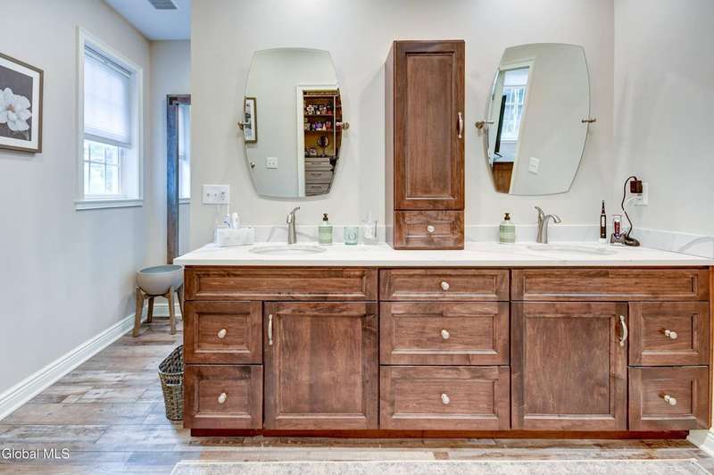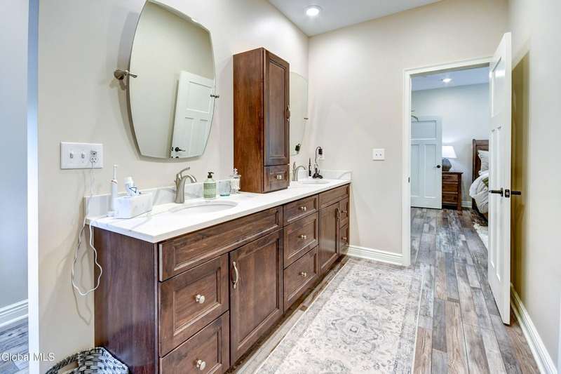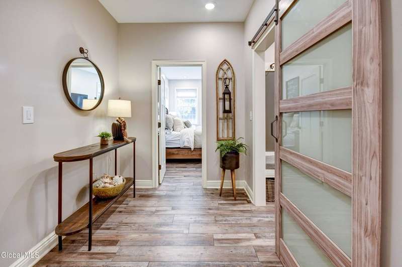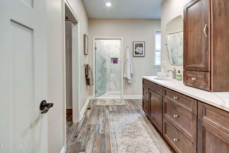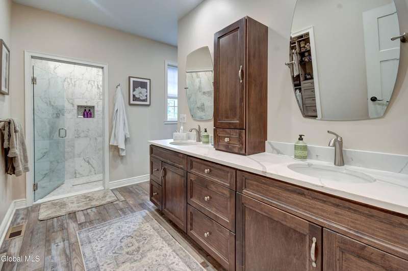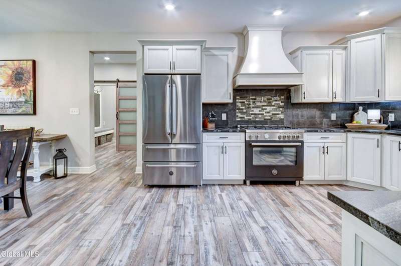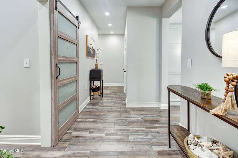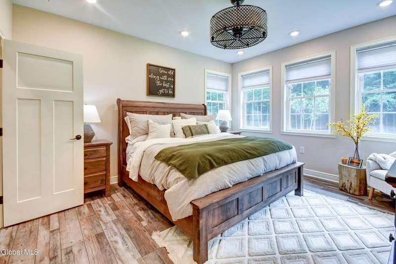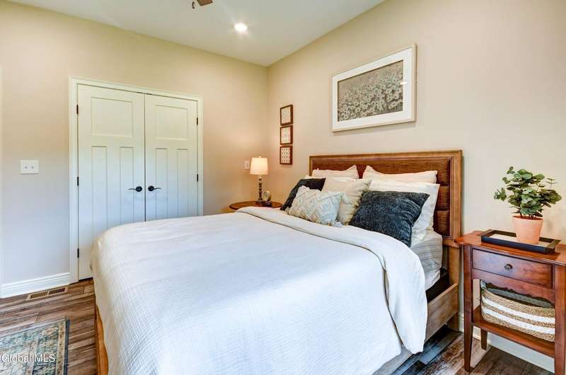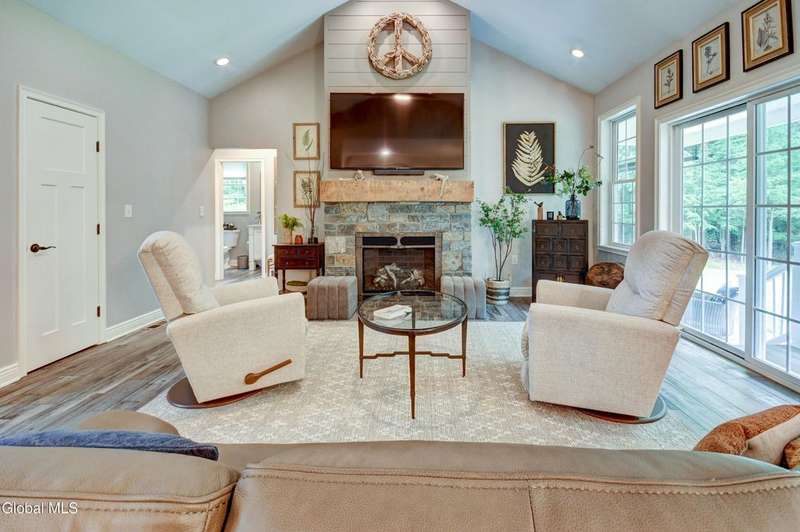 +1.5 private acres in the Guilderland School District, this 1,800 sq ft 3-bed, 2-bath custom Craftsman-style ranch offers comfort and space in a serene setting. A long private driveway leads to a charming one-story home featuring a warm living room with gas-burning fireplace, spacious eat-in kitchen, and generous bedrooms. Enjoy the convenience of public water/sewer and an oversized 2-car garage. Surrounded by trees, yet minutes to shopping, schools, and highways?this home blends quiet living with everyday access. Love the outdoors? look no further, while staying close to home. Wooded & Secluded lot with a nature surrounding with exotic and local birds, turkeys & deer.