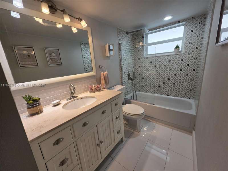 Don’t miss this rare opportunity! Spacious and beautifully updated 2/2 in a prime location, close to Aventura Mall, Brightline Station and beaches. Featuring porcelain floors, hurricane impact windows, stainless steel appliances, walk-in closet and modern bathrooms. Additional upgrades include a new A/C unit and water heater. The large screened-in balcony overlooks the garden, pool and lake. Pet-friendly building, it comes with storage unit, laundry rooms on each floor, assigned parking, 3 pools, 24/7 security and gated access. Rentals are allowed after 1 year.HOA fee includes internet and cable. The building has undergone major improvements:new roof, generators, new elevators, upgraded lobbies, new hallway windows. This December the condominium will complete the 40/50-year certification.