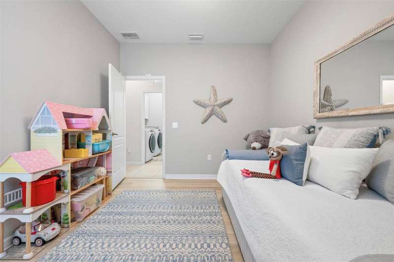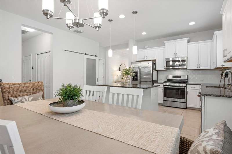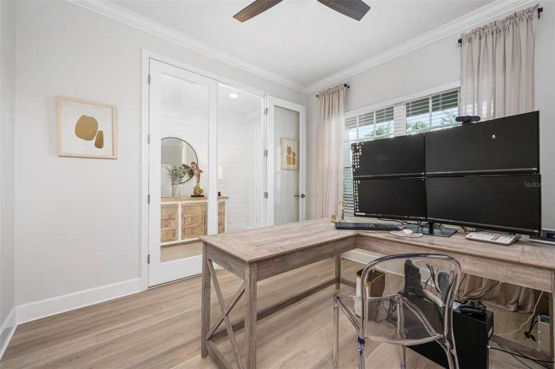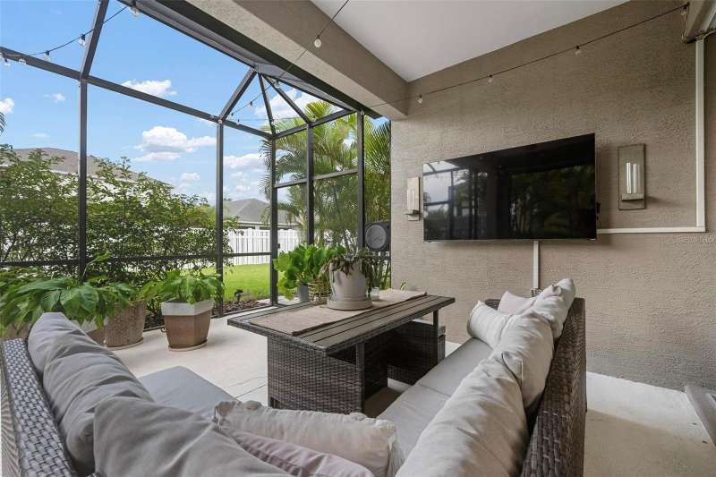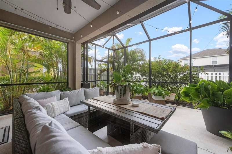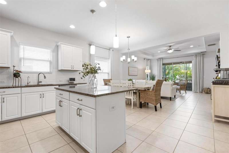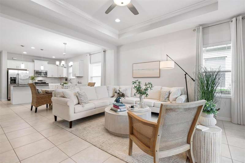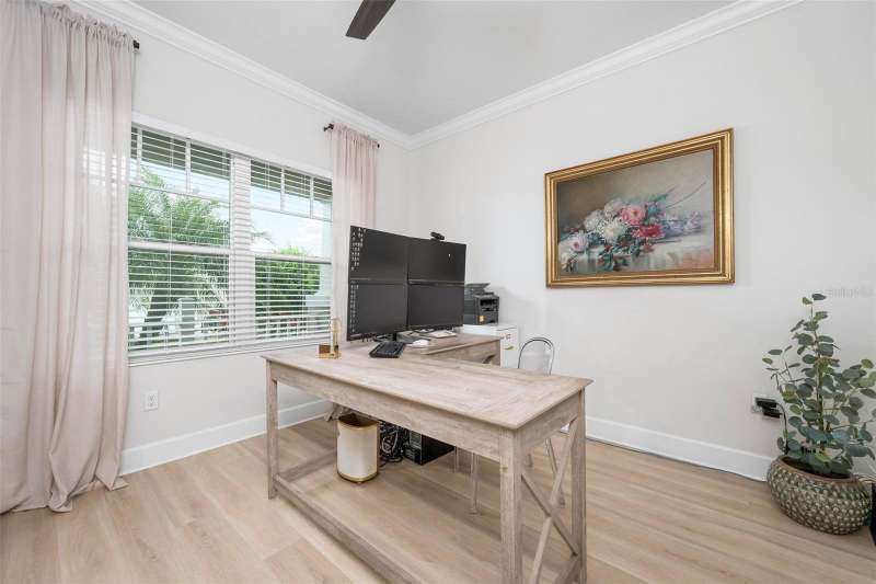 PERFECTION IN WOODBROOK… Move-in ready! Beautifully maintained 3-bedroom plus DEN home with a bright and open great room layout. Stylish upgrades throughout make this home feel like new. Welcoming covered front entry and meticulously maintained landscaping enhance the curb appeal. Neutral ceramic tile and luxury vinyl plank flooring throughout – no carpet. Foyer with charming ship-lap accent wall. Crown molding, tray ceiling, recessed lighting, updated stylish light fixtures and ceiling fans. Expansive great room with wall of floating wall-mounted shelves and cabinet. Pocket sliding doors open to the extended screened lanai for effortless indoor-outdoor living. Large fully fenced backyard with low-maintenance vinyl privacy fencing. Open floor plan connects the great room, dining room and kitchen. Inviting kitchen with Shaker-style cabinetry, granite countertops, subway tile backsplash, stainless steel appliances and a large center island with counter-height seating. A spacious walk-in pantry with barn door provides generous storage space. Retreat to the primary suite compete with a large walk-in closet and ensuite bath with tiled walk-in shower. Two additional bedrooms share a well-appointed full bathroom, while a versatile den with French glass doors at the front of the home makes for the perfect home office, media room, playroom or additional living space. The laundry room includes built-in cabinetry and GE washer and dryer. Additional closets throughout the home for storage and a two-car garage with built-in overhead storage. Built by award-winning Neal Communities and nestled in the private, pet-friendly community of Woodbrook. Residents enjoy a resort-style heated pool and spa, cabana, outdoor grill area with tables, playground, park, and scenic walking trails that wind through beautifully preserved natural surroundings. Conveniently located near world-class shopping at UTC, fine dining, cultural attractions, downtown Sarasota, the pristine Gulf Coast beaches, top-rated golf courses, and Sarasota-Bradenton International Airport. With easy access to the University Parkway corridor, everything you need is just minutes away.