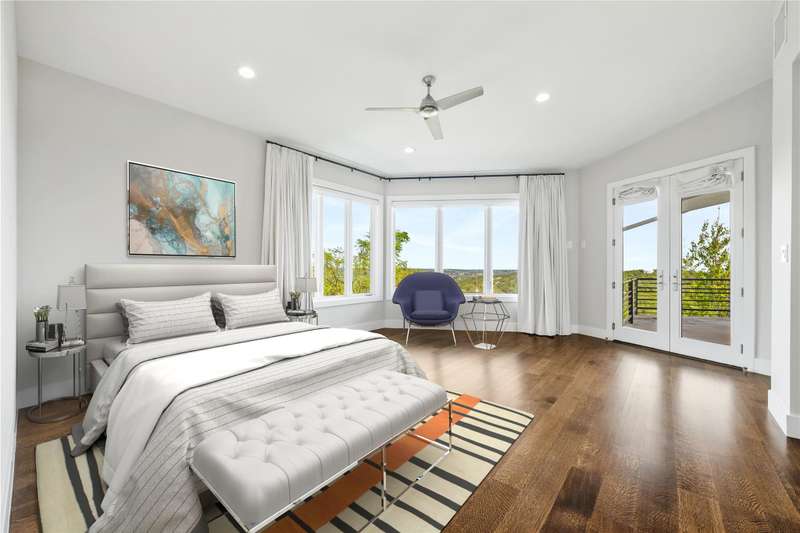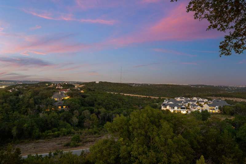 Situated in Rob Roy, one of Westlake's most coveted gated communities, 10 Hedge Lane boasts exceptional views, expansive terraces, and a 3-car garage. The single-level residence features 4 bedrooms and 4.5 bathrooms on a premier lot with a lush green yard and sports court. Glide over floating stones as you approach the striking glass doors that welcome you inside the residence. The interiors instantly impress with a vaulted ceiling, fireplace, and incredible panoramic views of the Hill Country and the Austin skyline in the distance. Natural light pours into the living room through abundant windows and sliding glass doors to the terrace. The living room flows into the immaculate gourmet kitchen with ample cabinetry, stainless steel appliances, and a wet bar. Escape to the privacy of the primary suite that features French doors to the terrace and beautiful vistas. The spacious primary bathroom offers dual sinks, a soaking tub, a glass-enclosed shower, a vanity room, and a massive walk-in closet. 3 additional guest suites, each with en-suite baths, provide comfort and privacy for family and visitors. A powder room, mudroom, and laundry room complete the home. Living in Rob Roy offers the perfect blend of privacy, prestige, and convenience in one of Austin's most sought-after gated communities. Nestled in the scenic hills of West Austin, residents enjoy expansive homesites with breathtaking Hill Country views, all while being just minutes from downtown, Lake Austin, and top-rated Eanes ISD schools. With 24-hour security, a tranquil atmosphere, and proximity to premier shopping, dining, and entertainment at Barton Creek and Westlake, Rob Roy provides a rare opportunity to enjoy both serene living and the vibrancy of Austin life. Tax and assessed values are estimates for illustration purposes only. All figures should be independently verified. Some images are virtually staged for visualization and may not reflect the actual appearance or condition of the property.