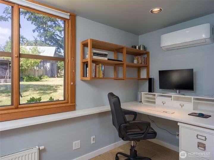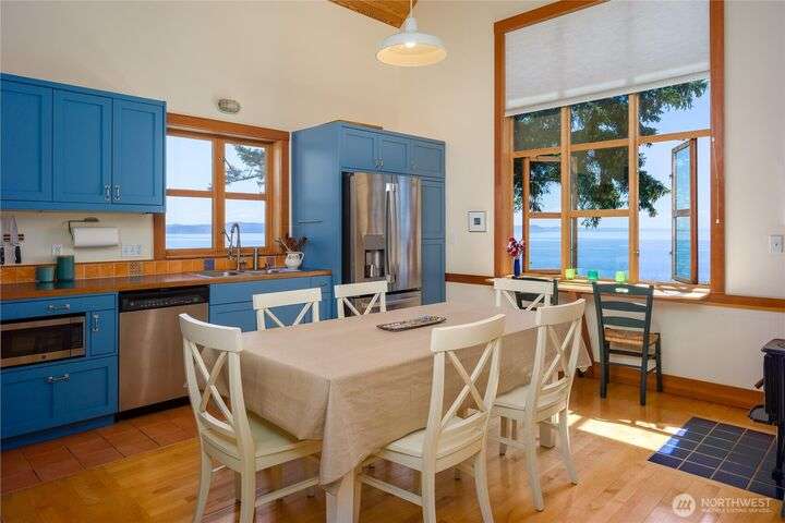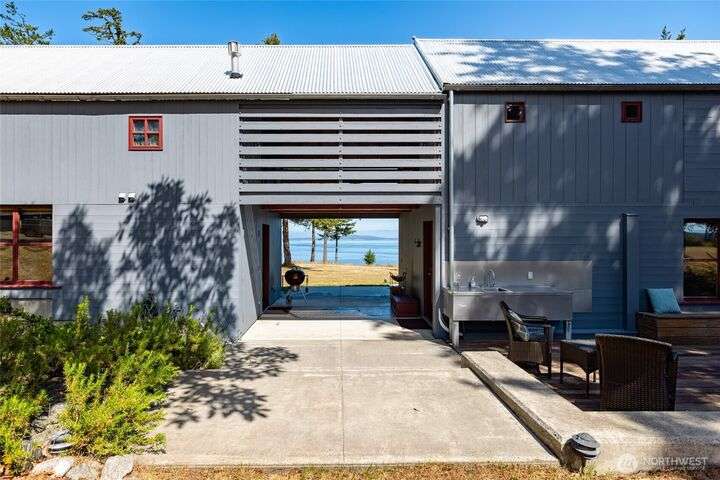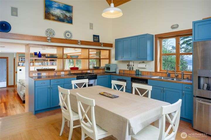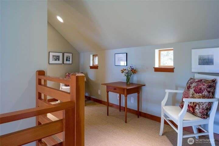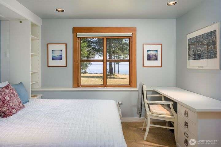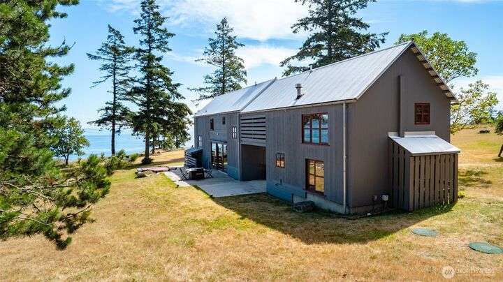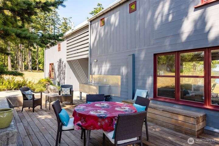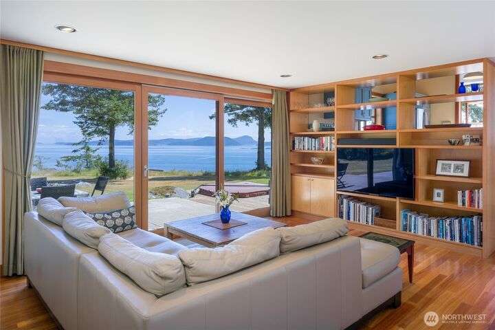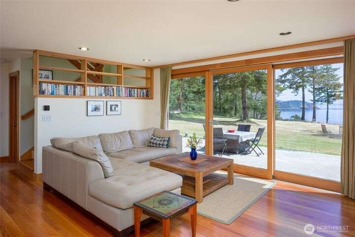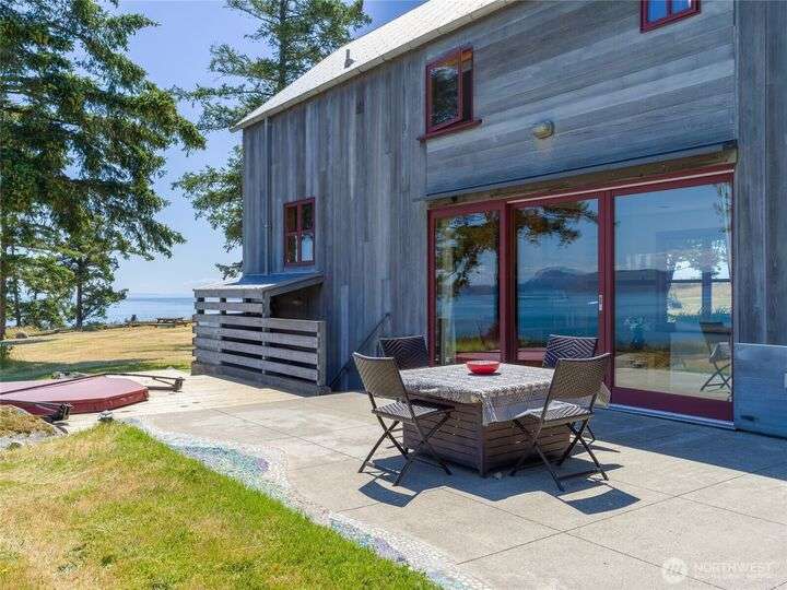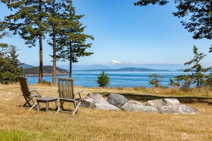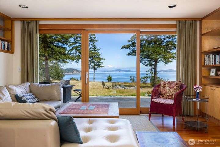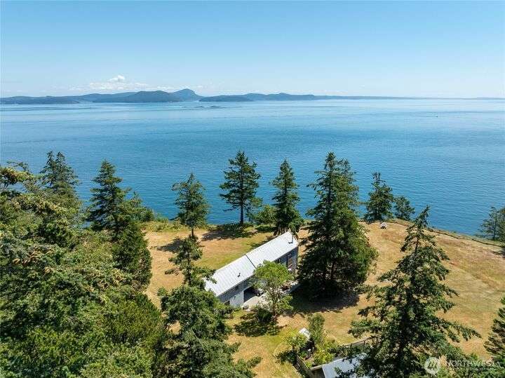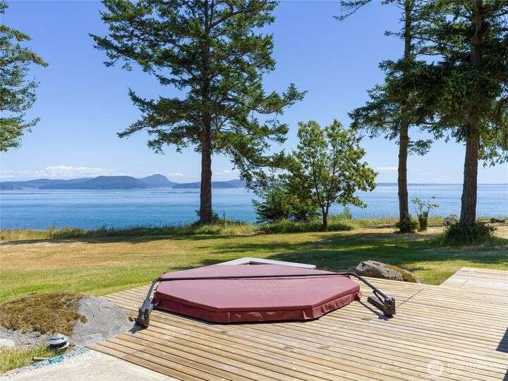 Beautiful waterfront retreat on Decatur Island with spectacular views and all-day sun. Original design by Bob Hull, later extended by Victoria Carter to include spacious living room and kitchen with woodstove for comfort, warmth, and connection. Bedrooms, home office, and guest spaces enjoy separation and privacy. Finished basement adds bunkroom, wine cellar, and storage. This welcoming home has heat-pump HVAC, hot tub, and patio/BBQ area. As members of the Whitecliff Farm community, owners share forest, meadow, fenced garden, workshop, and trails. The island offers golf, beaches, dock, boat ramp, and airstrip. Also available: mooring buoy and tennis/pickleball court. Frequent ferries from Anacortes (no lines). A gem in a perfect setting.