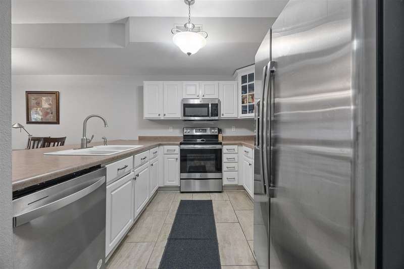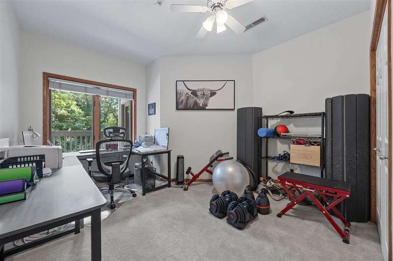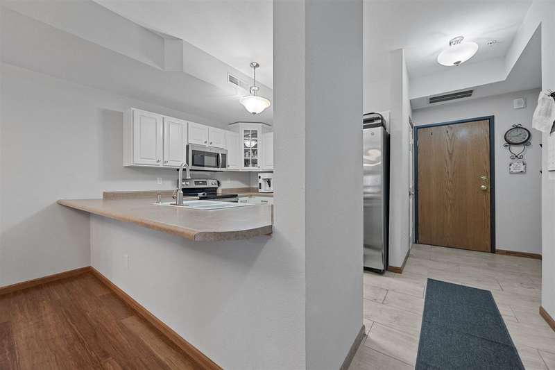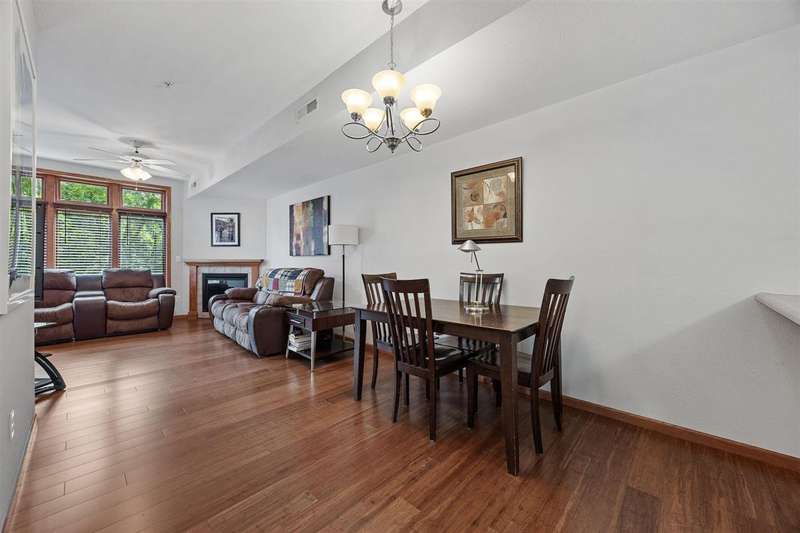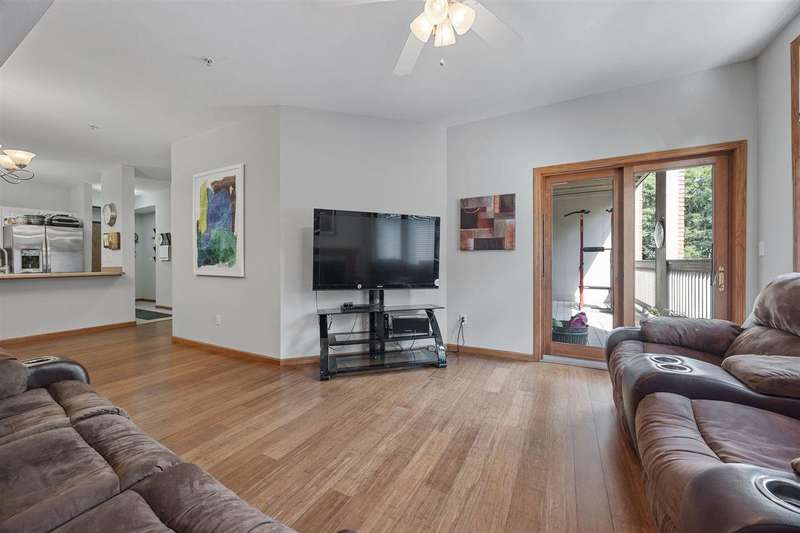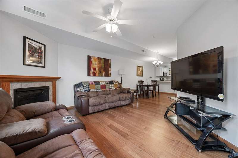 Welcome to this main floor 2 bedroom, 1 bathroom condo. The unit boasts an open floor plan, bamboo flooring in living/dining rooms, gas fireplace, large covered deck. The building offers an elevator to the underground parking, with no stairs needed for easy access. Close to trails and Iowa City parks. Buyer to verify ICCSD schools.