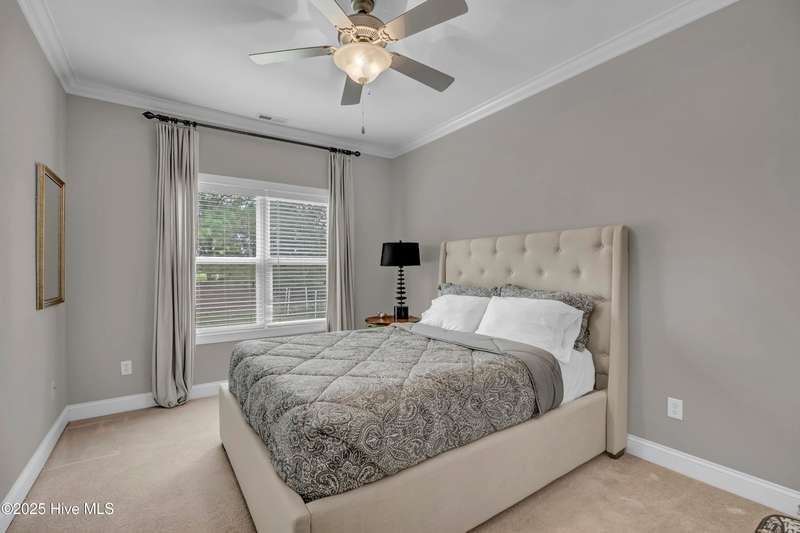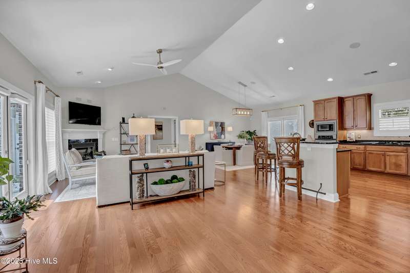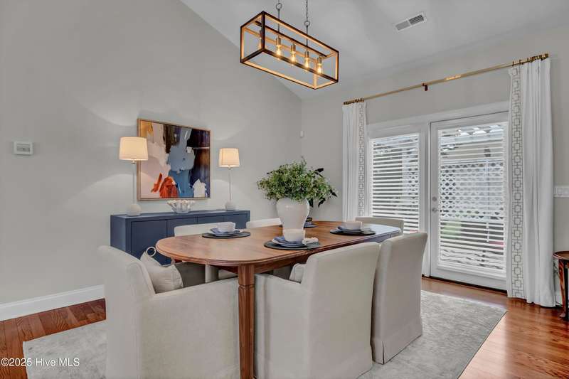 Located in a cul-de-sac within the Jefferson Landing neighborhood of Brunswick Forest, this beautifully updated, move-in ready home offers 2,227 sq ft of thoughtfully designed living space with tasteful upgrades throughout. The 3-bedroom, 2.5-bath layout includes select accessibility modifications, such as widened doorways and halls in certain areas, offering added functionality without sacrificing style.The main living area features soaring vaulted ceilings that create an open and airy feel, seamlessly connecting to the kitchen and dining areas. The kitchen boasts granite countertops, stainless steel appliances, and abundant cabinet space plus a custom-installed dry bar perfect for entertaining. A versatile office or flex space sits at the front of the home, ideal for working remotely or relaxing.The spacious primary suite includes a walk-in closet and a spa-like bathroom with a soaking tub, tiled walk-in shower, and double vanity. Engineered hardwood floors can be found throughout the home. Outdoor living is a highlight, with two distinct spaces: a covered lanai on one side of the home and a separate patio with a pergola on the other offering flexibility for both relaxing and hosting. Additional features include an epoxy-coated garage floor and freshly painted garage walls. Updated mechanicals include a new HVAC system in 2018 and hot water heater in 2021.Set on a 0.31-acre lot in one of the area's most popular master-planned communities, this home offers comfort, quality, and convenience in a sought-after location just minutes from downtown Wilmington.