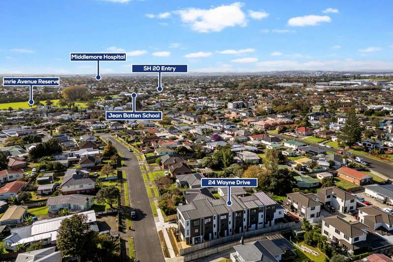 An exciting new development of six stylish terraced homes is now available in Mangere, thoughtfully designed over three levels to suit the needs of modern living. Each home offers a well-considered layout, with the choice of a spacious 3-bedroom plus study with 3 or 3.5 bathrooms, or a generous 4-bedroom configuration with 3.5 bathrooms. All homes include the convenience of a single internal access garage. The open-plan kitchen, dining, and living areas create a welcoming and versatile space, perfect for families, entertaining, or simply relaxing at home. High-quality finishes and smart design elements feature throughout, delivering comfort and functionality in equal measure. Located just a short distance from Mangere Town Centre, with easy motorway access to SH20 and close proximity to Auckland Airport, this location is ideal for commuters and frequent flyers alike. In Zone for Jean Batten School, Sir Douglas Bader Intermediate, Southern Cross Campus, and Aorere College. Whether you're looking to upgrade your lifestyle or secure a stylish and low-maintenance home, these terraced residences are a must-see! Enquire today or join us at the open homes as advertised and take the next step toward modern, convenient living. NOTE: Interior photography in this advertisement features Lot 1. Lots 2–6 share a similar design and layout; however, variations in finishes and floor plan may apply.