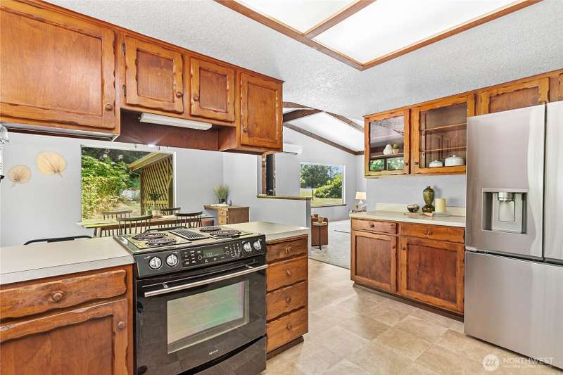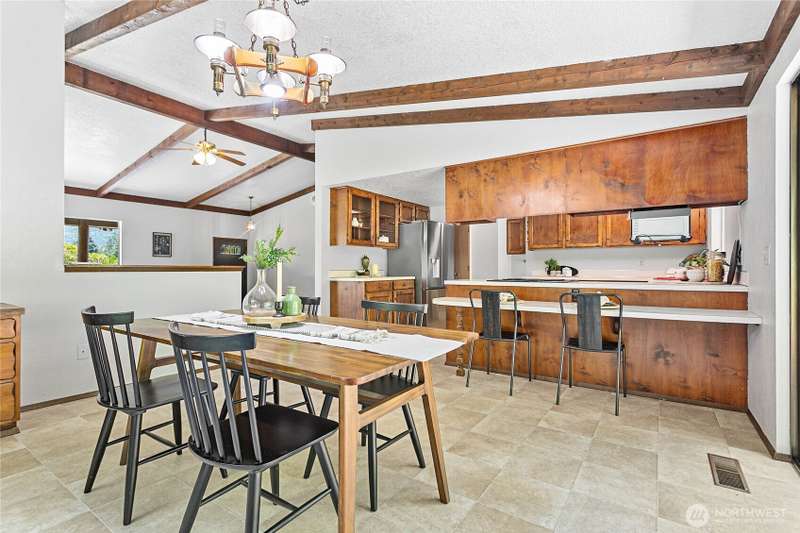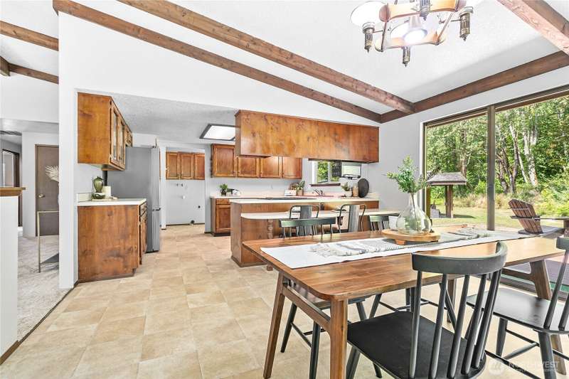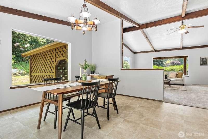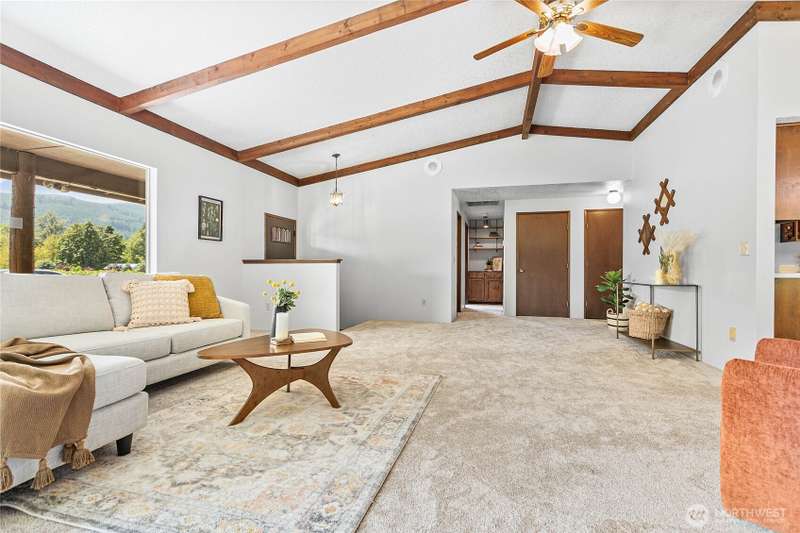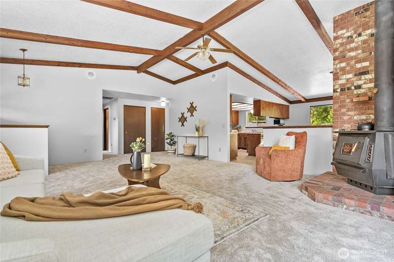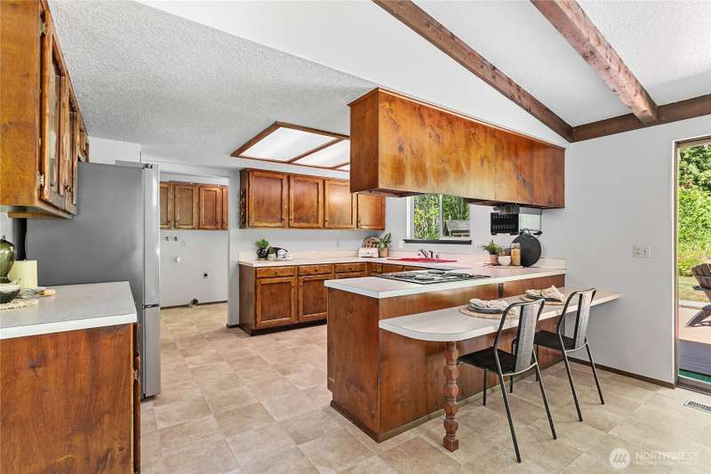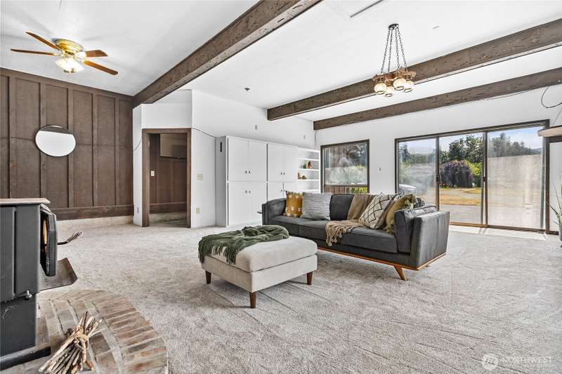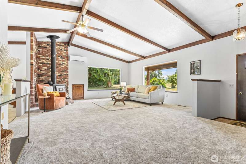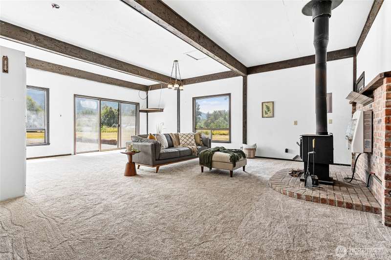Discover your peaceful retreat on 2 serene acres, surrounded by towering trees and a creek less than 20 minutes from Bellingham. This refreshed one-level home features a brand-new roof, fresh interior/exterior paint, and new flooring throughout. Inside, enjoy 2 bedrooms, 2 full baths, and a spacious living room with vaulted ceilings, exposed wood beams, and a cozy wood stove. Step out onto the composite back deck to soak in the lush surroundings and garden space - perfect for planting or creating your own outdoor sanctuary. The rec room has its own wood stove, wet bar, separate entrance, and an additional half bath. The large 4,400 sq ft shop includes a fully enclosed, insulated, and heated portion - ideal for project or creative pursuits.