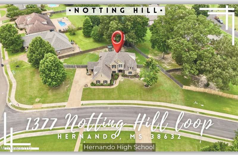 Impressive 5-Bedroom Home in Desirable Notting Hill - Hernando, MSWelcome to this stunning 5-bedroom, 4-bathroom home located in the highly sought-after Notting Hill subdivision within the Hernando School District. Offering 3,800 sq. ft. of beautifully designed living space across two levels, this residence perfectly blends space, style, and comfort for modern family living.Step inside to a freshly painted interior featuring an open-concept main floor with large windows that fill the home with natural light. The chef's kitchen boasts dark wood cabinetry, granite countertops, stainless steel appliances, a double oven, and flows seamlessly into the spacious living and dining areas--ideal for both everyday living and entertaining.The main level includes a generous primary suite and an additional secondary suite with a private bathroom, while the upstairs offers oversized bedrooms, well-appointed bathrooms, and a private theater room with built-in, professional-grade surround sound. Recessed lighting and upgraded fixtures enhance both levels.Every inch of this home reflects thoughtful upgrades--from new paint on all walls, ceilings, trim, closets, and cabinets to modern lighting, crown molding, and elegant flooring combinations of hardwood, carpet, and tile. Bathrooms are stylishly designed with granite countertops, tiled surrounds, and even include a jacuzzi tub for relaxing.Outside, the home's classic brick facade is paired with a covered entry, floral accents, and a professionally landscaped yard with full irrigation in both the flowerbeds and lawn. A spacious patio offers the perfect setting for outdoor dining and entertaining. Additional highlights include a brand-new roof and freshly painted exterior.Thinking about adding a pool? Check out the 3D tour to envision how the open layout and backyard could come together beautifully.With its prime location, spacious layout, and high-end finishes, this is the only current listing in Notting Hill--a rare opportunity to own in one of Hernando's most desirable neighborhoods.