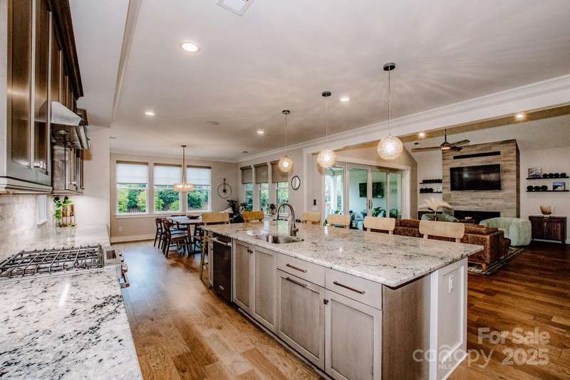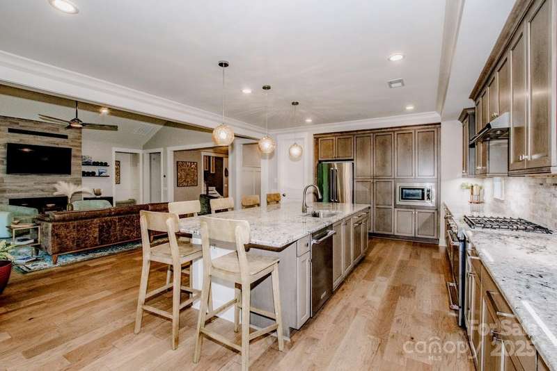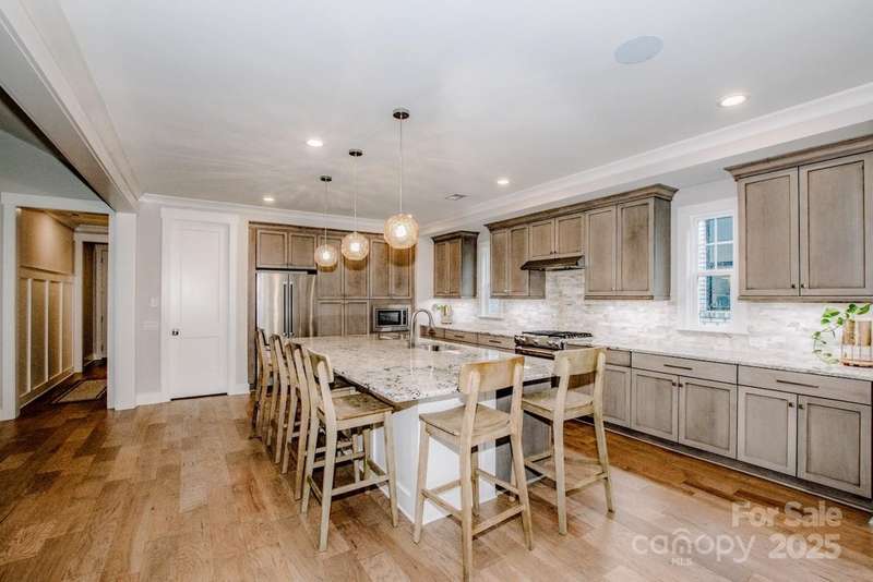 Better than new Classica with fresh paint throughout most of the home! Custom finishes, upgrades galore. This home features dramatic ceilings, fabulous wall designs, and open floor plan that seamlessly blends indoor & outdoor living. The kitchen with an oversized island flows to a large dining area. The Great Room features glass sliders that reveal a covered outdoor living space surrounded by meticulous landscaping. The main level Primary BR retreat features a spa like primary bath with separate vanities, a free standing tub, shower with floor to ceiling tile and a custom closet with laundry. Also enjoy a main level office with French doors for privacy. Upstairs find 4 BR's and 3 full baths, plus a large open bonus room, a work from home tech space, additional laundry room & walk-in storage. Walking trail nearby! Convenient to Birkdale and other shopping and dining options. Room for a pool. See attachments. Window treatments, 2 sets of washer/dryers and a fridge in the garage in addition to the kitchen fridge. Freshly painted and touched up where needed. Truly move in ready!!