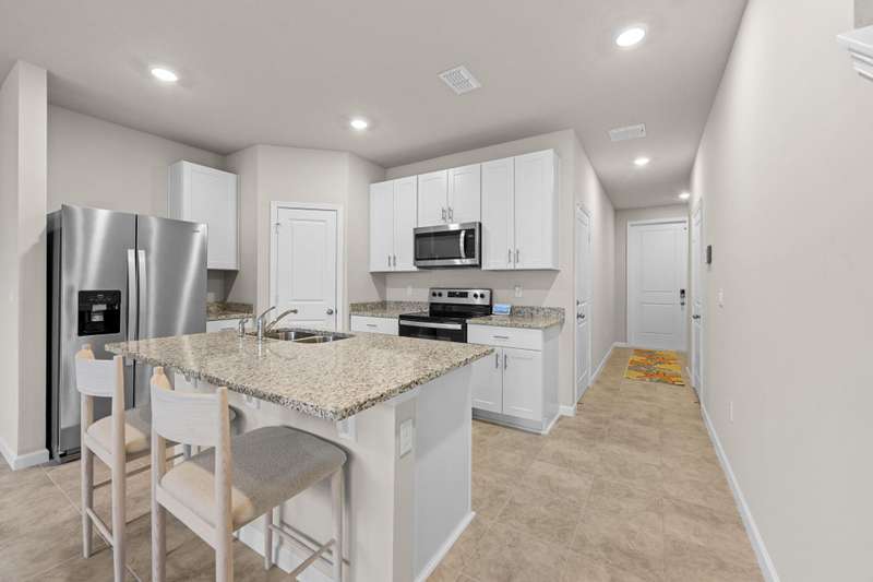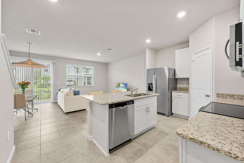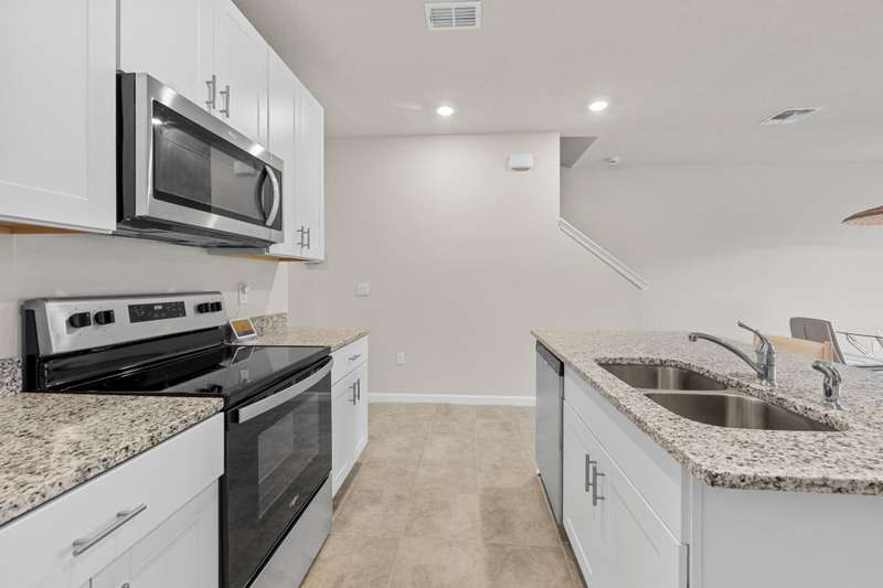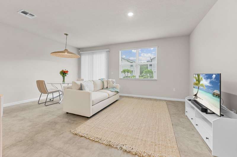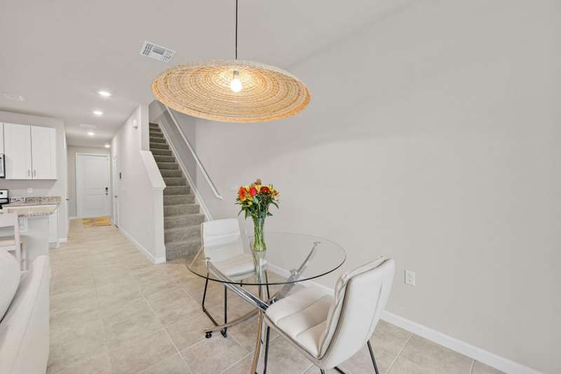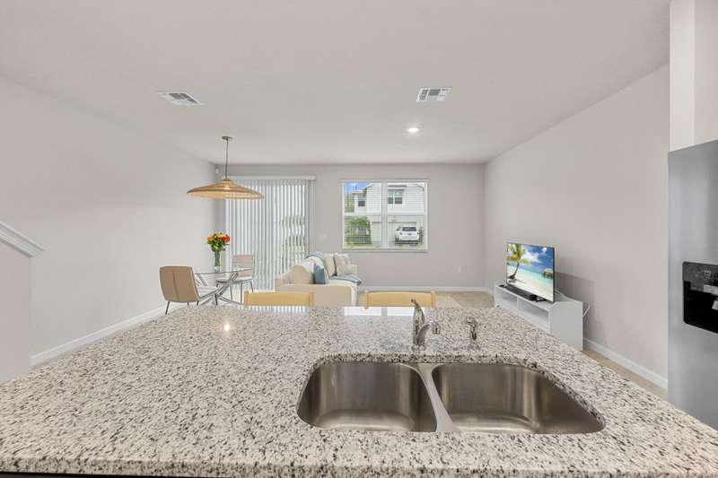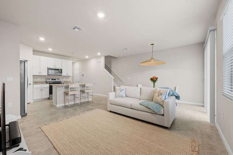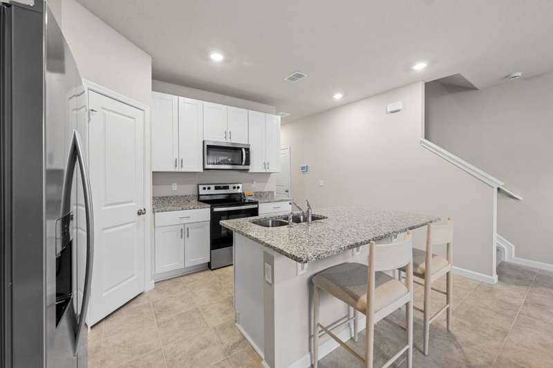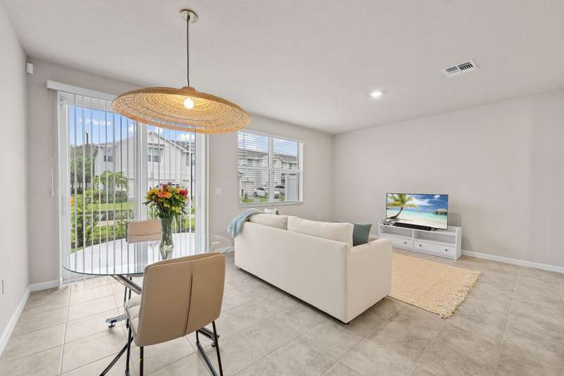 Welcome to this gently lived-in 3 B/R, 2.5 BA townhome w/1-car garage. Situated in a quaint and highly desirable gated community. Over 1,400 sq ft of thoughtfully designed living space, this home offers modern finishes and low-maintenance living. The open-concept main level features a spacious kitchen with granite countertops, white shaker cabinets, center island, and a full stainless steel appliance package - perfect for entertaining and everyday living. Impact glass throughout adds peace of mind and energy efficiency. Upstairs, youll find a versatile loft area, a serene master suite with walk-in closet and private ensuite bath, a fully equipped laundry room, and two additional bedrooms. Enjoy community amenities including a cabana and refreshing pool. Conveniently located with easy