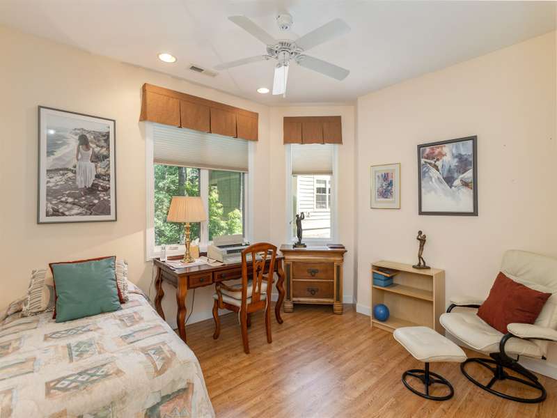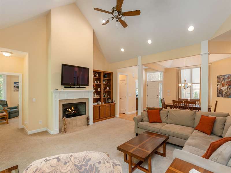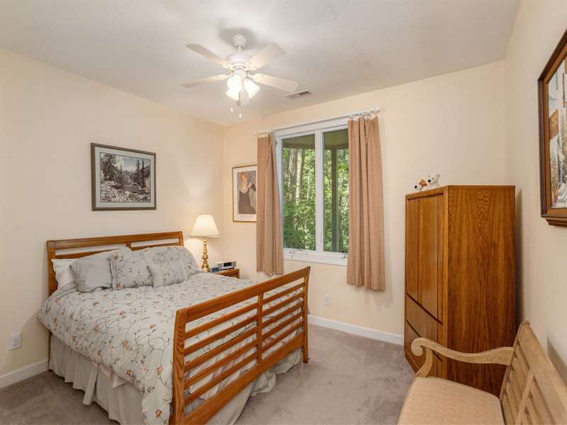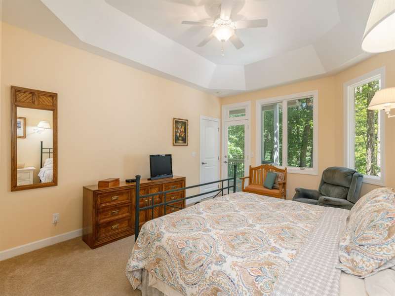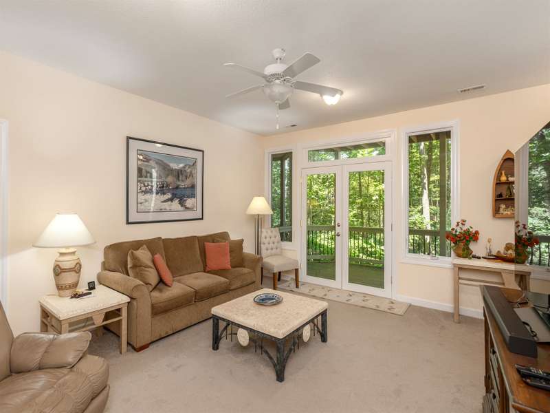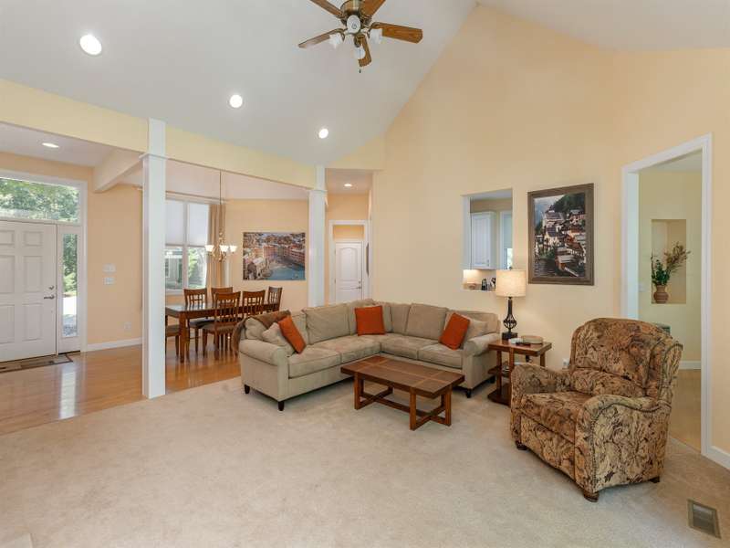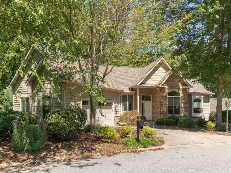 Discover a beautiful custom-built home designed for discerning buyers seeking comfort and sophistication. The open great room floor plan is highlighted by a cathedral ceiling and a gas log fireplace, creating an elegant yet inviting atmosphere. French doors open to a charming covered porch, perfect for relaxing or entertaining guests. The kitchen is equipped with solid surface counters, abundant cabinetry and a spacious walk-in pantry to meet all culinary requirements. The primary suite provides a private retreat with dual walk-in closets and a luxurious bath with jet soaking tub and a step-in shower. On the lower level, a generous family room offers access to the lower covered porch and two en suite bedrooms, and a substantial storage area. Enjoy community amenities in this gated community; clubhouse, indoor pool and tennis!