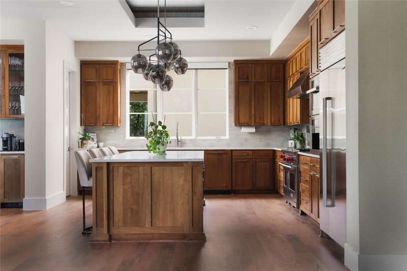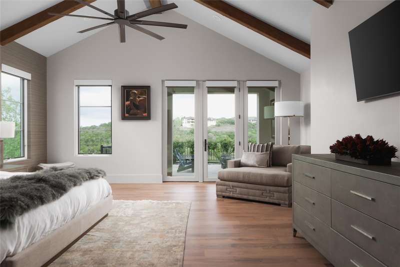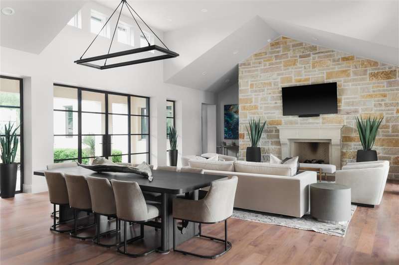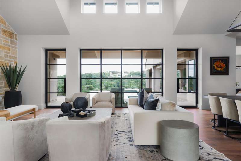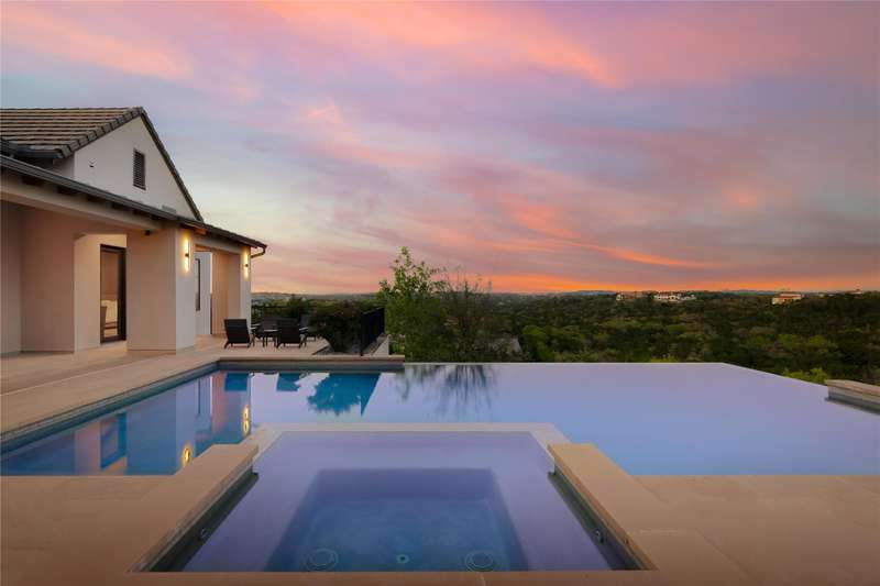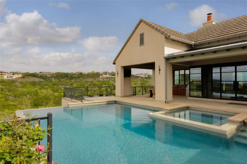 Set atop 2+ acres in the exclusive and gated Amarra enclave of Barton Creek, 4717 Peralta Lane offers a rare blend of refined luxury and breathtaking natural beauty. From its commanding hilltop position, the property enjoys unobstructed panoramic views of the surrounding canyon and Hill Country landscape. Built by Heyl Homes, the residence combines timeless architectural elements with modern craftsmanship, featuring striking vaulted ceilings, steel-framed windows, and a grand stone fireplace that anchors the living space. The mesquite hardwood floors run seamlessly throughout the home, enhancing its warm, organic feel. At the heart of the home is a chef's kitchen designed for both beauty and performance. A sunlit breakfast area frames sweeping views of the hills beyond, while an adjacent wet bar makes entertaining effortless. The main residence includes four bedrooms, with the primary suite offering a true retreat experience--complete with a private terrace, vaulted beamed ceilings, and a spa-like bath wrapped in marble. A freestanding soaking tub, spacious walk-in shower, and custom walk-in closet complete the serene primary sanctuary. The home's orientation on this impressive 2+ acre lot perfectly optimizes the sunset views over the sparkling pool and Hill Country vistas. The negative-edge pool and spa seem to spill into the horizon, while expansive patios, a full outdoor kitchen, and lounge spaces invite year-round enjoyment. Nestled away from the main house, a separate guest casita offers two bedrooms, two bathrooms, a full kitchen, living and dining area, and laundry. Additional amenities include a golf simulator, offered to the property's future owners. Tax and assessed values are estimates for illustration purposes only. Square footage is per Floor Plans Graphics measurements and any interested party should confirm and not exclusively rely on the information contained herein. All figures should be independently verified.