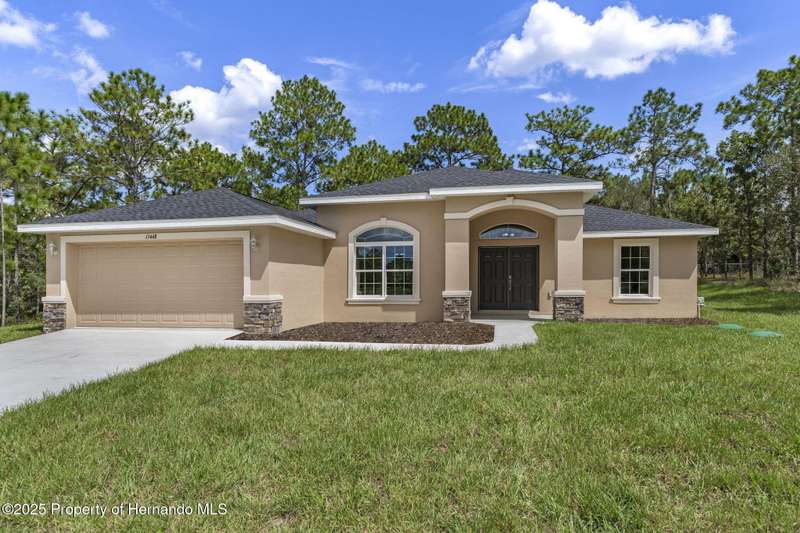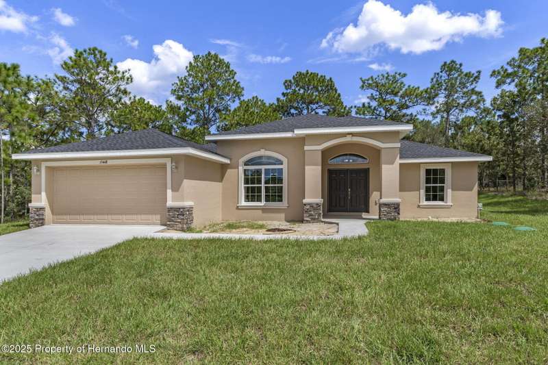 ACTIVE UNDER CONTRACT........WELCOME HOME!!! BRAND NEW CONTRUCTION BUILT BY PASTORE CUSTOM BUILDERS, A NAME SYNONYMOUS WITH QUALITY CONSTRUCTION. Nestled in Weeki Wachee's Royal Highlands Unit 7, offering COUNTRY and CONVENIENCE. This 3 bedroom 2 bath offers thoughtful design, elegant finishes, and quality Craftsmanship. Double door entry leads into the OPEN CONCEPT layout, you'll immediately notice the abundance of natural light offered by triple sliding doors and windows and enhanced by a soaring trayed ceiling and soothing contemporary color pallet. All of the main living areas are finished with elegant wood-look plank tile flooring, offering both style and durability. The heart of the home, in the Kitchen you'll find absolutely beautiful quartz counters, soft closed cabinetry and a full stainless steel appliance package inclucing refrigerator, range, microwave, and dishwasher. The generous Master suite offers trayed ceiling, two walk in closets and an elegant en suite bath boasting quartz counter, dual vanities, walk in tiled shower with glass doors, and pocketed commode. Across the split plan you'll find the second and third bedrooms sharing the equally elegant second bath with quartz counter, tiled bath and shower thoughtfully located with access to the large under roof lanai, perfect outdoor entertaining or future pool plans. 13x10 Flexible office space offers French door entry, a large window providing natural light for a pleasant work environment or potentially additional space for overnight guests. Outside offers a partially treed half acre of land, a freshly sodded yard with irrigation. NO HOA, NO CDDs. Nearby the Weeki Wachee, Chassahowitzka and Homosassa Rivers and the Gulf of Mexico, vast State Forests and Recreational opportunities.... Welcome to Florida's Nature Coast .....WALK, RUN, PADDLE, SWIM, FISH, BEACH , Relax, REPEAT....Florida at it's finest!!