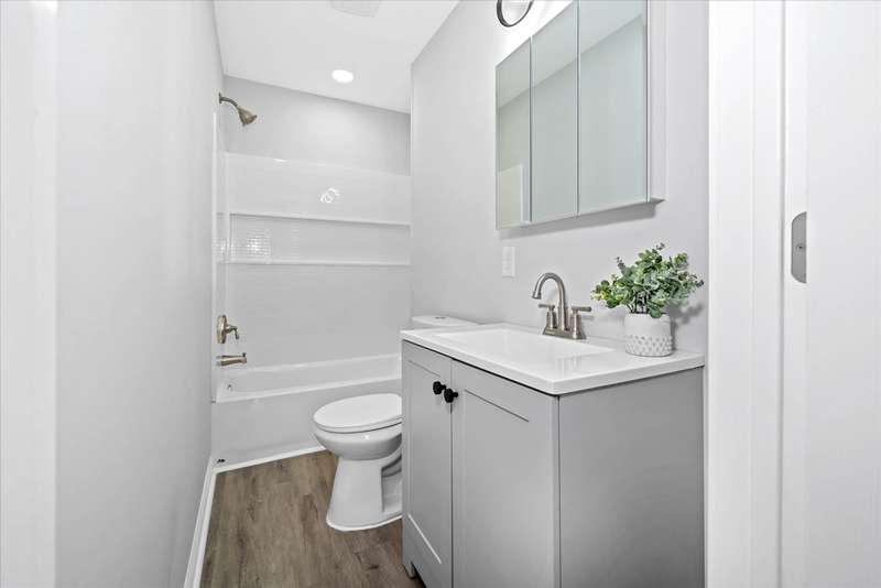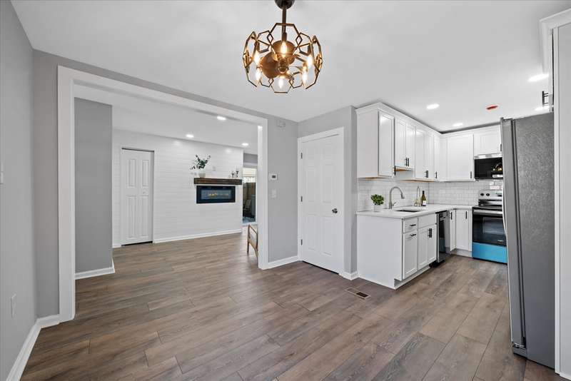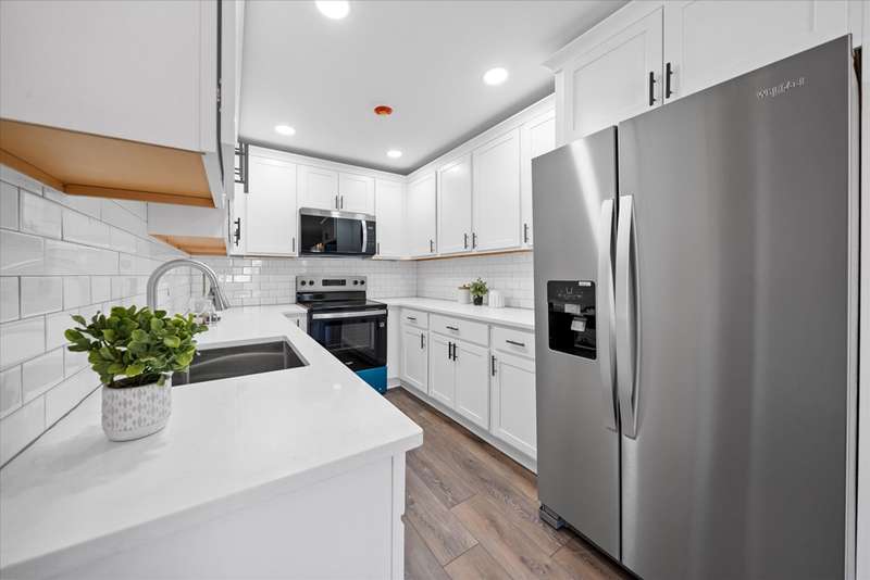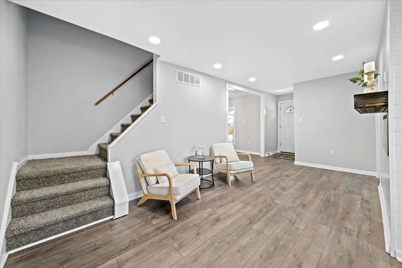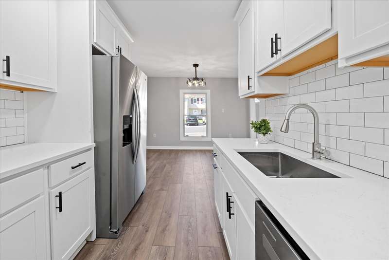 This fully remodeled 3-bedroom, 2.5-bath townhouse has been completely transformed into a stunning modern oasis. No detail has been overlooked; everything is brand new! Step inside to discover all-new luxury flooring, fresh paint throughout, and custom finishes that combine style and comfort. The spacious living area flows seamlessly into a gourmet kitchen featuring brand-new stainless steel appliances, quartz countertops, custom cabinetry, and a stylish backsplash. The dining area is open to the kitchen and the living room, which includes a shiplap accent wall with an electric panel fireplace. The powder room completes this level before you go up the steps to the large primary bedroom that consists of a FULL BATHROOM!! The other 2 bedrooms are generously sized and share an additional full bathroom. All bedrooms feature premium ceiling fans with lights and wall-to-wall carpet. Down to the partially finished basement family room with a laundry center and a wash sink closet. There is an additional finished room that could be a future office, and an unfinished space for storage. The HVAC system was just replaced from oil heat to a high-efficiency heat pump and central air system. The side yard is partially fenced and includes a newly poured concrete patio and walkway.