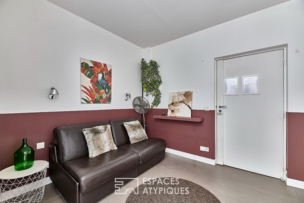 Upon entering, a 9.43 sqm modular space offers the possibility of creating an intimate living room or a functional office.