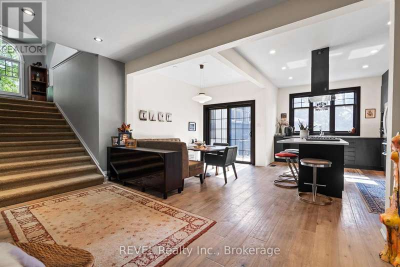 Welcome to 335 Helena- 250 metres from the sandy shores of Waverley Beach, this custom-built multi-level home offers an exceptional blend of beach-side living and work-from-home potential like no other! With 4 bedrooms, 2 bathrooms, and a rare 60 x 16 ft workshop with loft space, this property is a dream for creatives, hobbyists, or professionals seeking a unique, flexible and functional space- right by the water! Step inside to a beautifully updated main floor with open-concept living that's warm, stylish, and full of charm. The 2022-renovated kitchen is a standout, featuring new counters, dazzling designer cabinetry, custom lighting, and a statement hanging hood fan. Rich hardwood floors add depth and elegance, flowing effortlessly into the dining area and front foyer. A flexible main floor bedroom or den space and a 2-piece bathroom add convenience. Climb the wide staircase to the bright and spacious living room addition with a cozy fireplace- perfect for movie nights and family gatherings. Tucked beside an arched window is a reading nook you will never want to leave, and there's another versatile room for guests or a home office. Just outside, the impressive 30-foot rooftop terrace invites you to dine, relax, and entertain under the open sky. On the second floor, two more bedrooms and a full bath complete the homes private spaces, with the primary bedroom offering a generous dressing area and double closet. The attached garage leads into the impressive aluminum workshop- over 1,275 sq ft across two levels, ready for your passion projects, small business, or a dream studio. There's also a second kitchen + laundry area in the garage (currently being used for storage) and more storage space in the rear shed and oversized yard. This is not just a home- its a lifestyle. Live where you can walk to the beach, cycle along the Friendship Trail, and have the space to create, grow, and truly thrive. Here we have that one-of-a-kind property you've been waiting for! (id:7434)