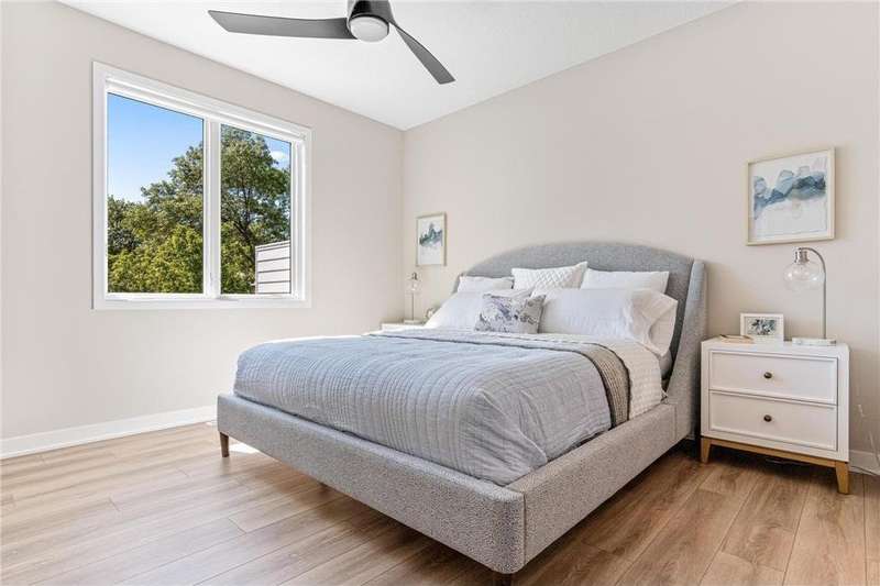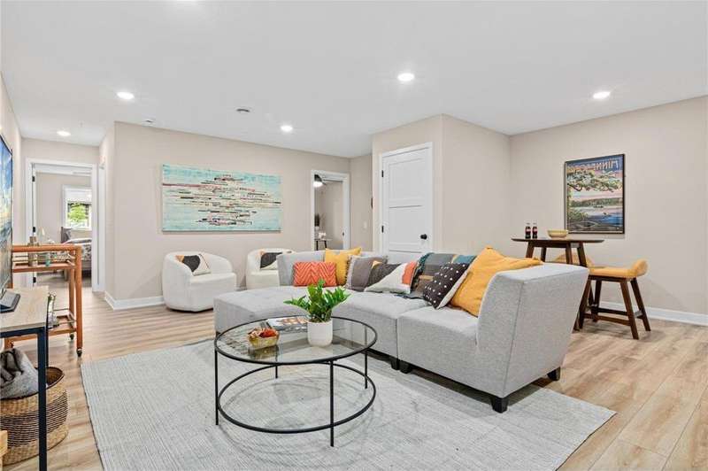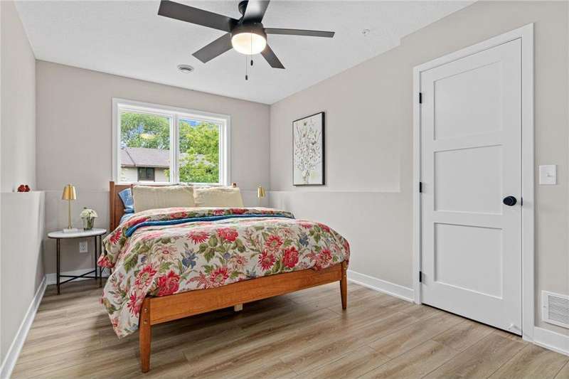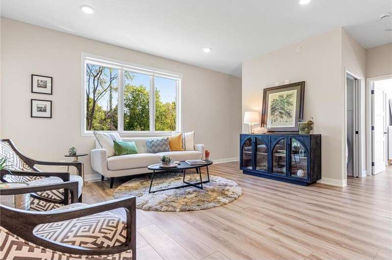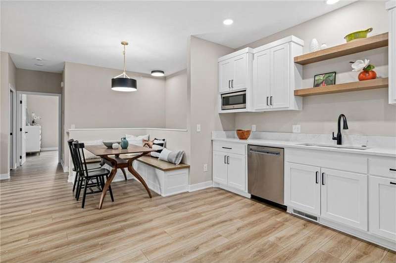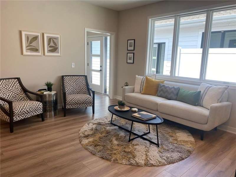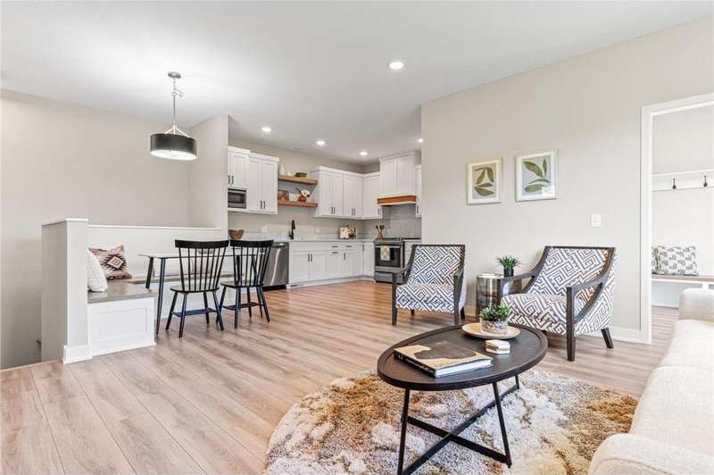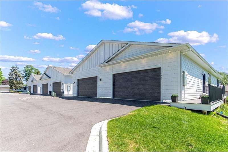 Located where Roseville and Saint Anthony Village meet, this beautifully designed new construction twin home offers an ideal setting for those looking to age in place, downsize, or simply enjoy a more low-maintenance lifestyle. This interior unit tucked away from the street offers the perfect blend of privacy and community within a quiet six-unit development. Designed for daily ease and special gatherings alike, the main level features all essential living spaces, including a spacious primary suite with a walk-in closet, a 3/4 bath with a roll-in shower, convenient laundry, and a bright sunroom that opens directly to a private deck. Crafted with high-end finishes-luxury vinyl flooring, Pella windows, quartz countertops, and soft-close enamel wood cabinets-every detail speaks to thoughtful craftsmanship and comfort. Built-in cabinetry in the foyer, mudroom, and kitchen ensures ample storage throughout. The finished lower level offers two additional bedrooms, a full bath, a generous family room, and a flexible space ideal for storage, a home office or a workout area. Wide doorways and lever-style handles enhance accessibility, while the attached insulated garage provides year-round comfort. THE WOODS OF ROSEVILLE is a boutique twin home community that combines timeless design with modern convenience. Located within the award-winning Mounds View School District and just minutes from shopping, healthcare, parks, and restaurants. To view photos of a furnished unit with the same features and the mirror opposite layout, check out the listing for the model unit, 2444 County Road D, Roseville. SELLER FINANCING AVAILABLE- starting at just 4% for the first year.