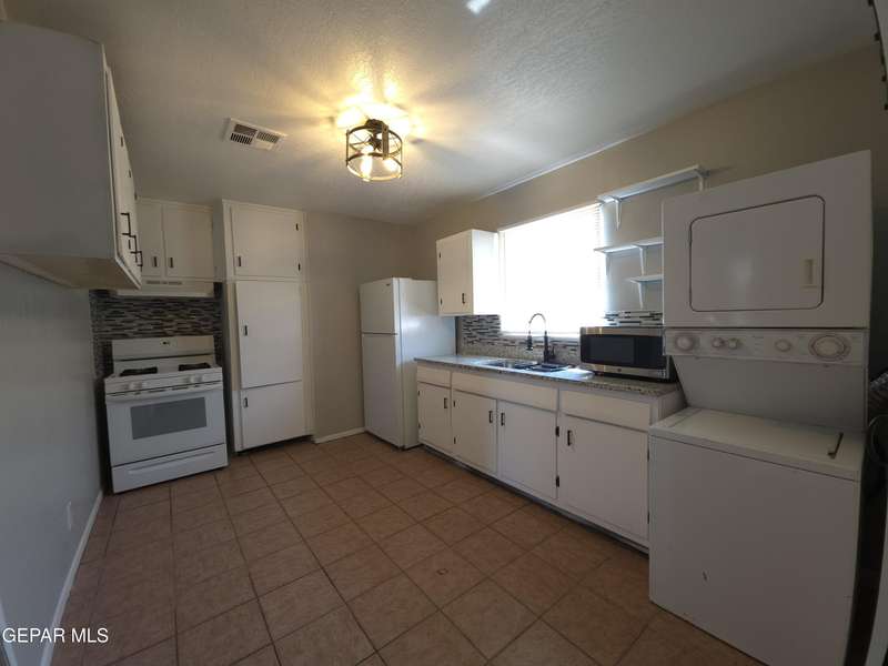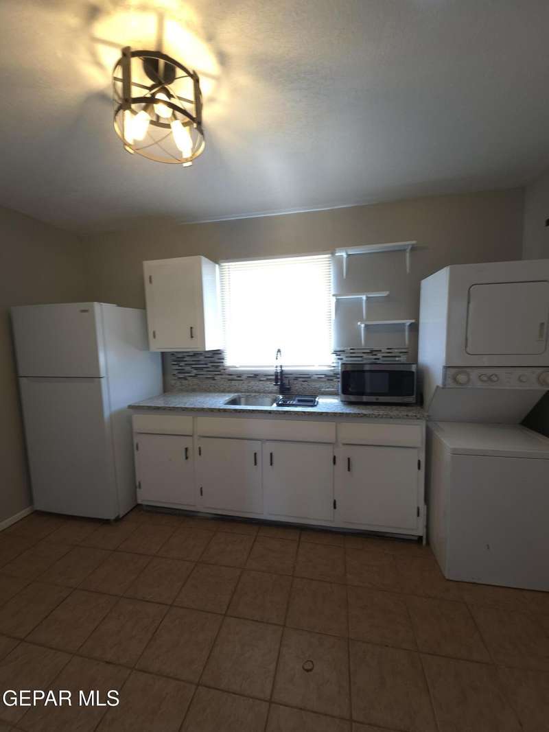 Drive up to great curb appeal for this home will be green year round and maintenance free as owner has put artificial grass in front yard which is also fenced for privacy. Home is all tiled no carpet and has a converted garage that has a full bathroom so could be used as an extra living area or bedroom. Kitchen appliances available for use but only stove will be warranted: gas stove, refrigerator, and stackable washer/dryer. Convenient location close to stores, post office, and US 54. Pet is acceptable with landlord's approval of type, breed, and size with an addition non-refundable deposit.