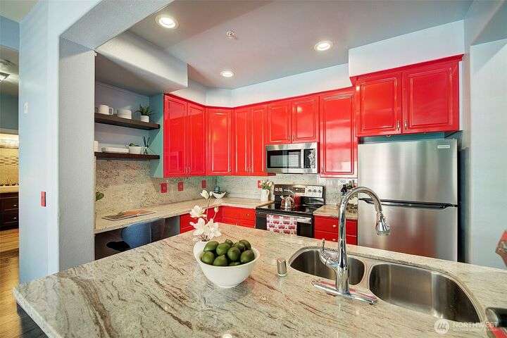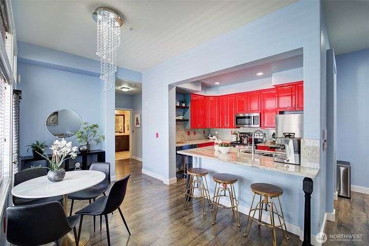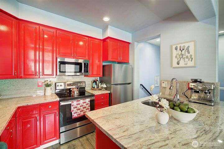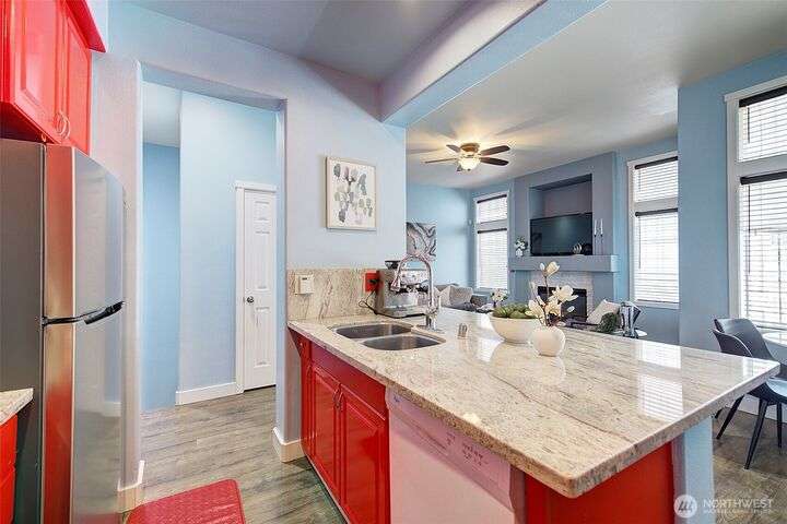 Discover a home that feels like a retreat in the coveted Plum Grove community. This 1-bed, 1-bath townhome offers a spacious bedroom and 920 sq. ft. of open, light-filled living space accented by soaring 10’ ceilings. Spacious primary suite with walk-in closet and the beautifully updated kitchen—with brand-new SS appliances, RVP floors throughout, full-size laundry room, attached 1-car garage with w/storage, spacious balcony & gas fireplace. Roof (2023) and newer siding. HOA includes water, sewer, garbage, and earthquake insurance. Pet-friendly, well-managed private community in the heart of Renton Highlands. With your own garage, storage, and driveway parking, this home offers both ease and elegance—an everyday sanctuary to love.