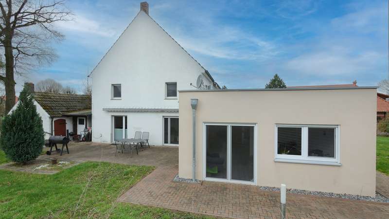 Spacious detached house with extensive plot in idyllic location This spacious detached house offers plenty of space and numerous possibilities for individual design. Situated in a quiet, rural setting, the property boasts a large plot that offers plenty of space for garden lovers, families or keeping animals. The house has been largely modernized and has a new, high-quality fitted kitchen as well as a large, cosy living room with a fireplace, which creates a comfortable atmosphere. A special highlight is the barrier-free extension from 2018, which is equipped with underfloor heating and can be used in a variety of ways. On the upper floor, a kitchen and a bathroom have already been prepared but are not yet finished - this offers the opportunity to realize your own living ideas. There is also a further expansion reserve in the attic, which can create additional living space. The spacious garage with integrated workshop offers plenty of space for vehicles, hobbies or craft activities. This property offers numerous possibilities for individual use - whether as a spacious family home, a multi-generational home or for living and working under one roof. Have we piqued your interest? Please contact us for more information or to arrange a viewing!