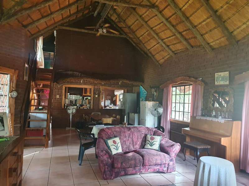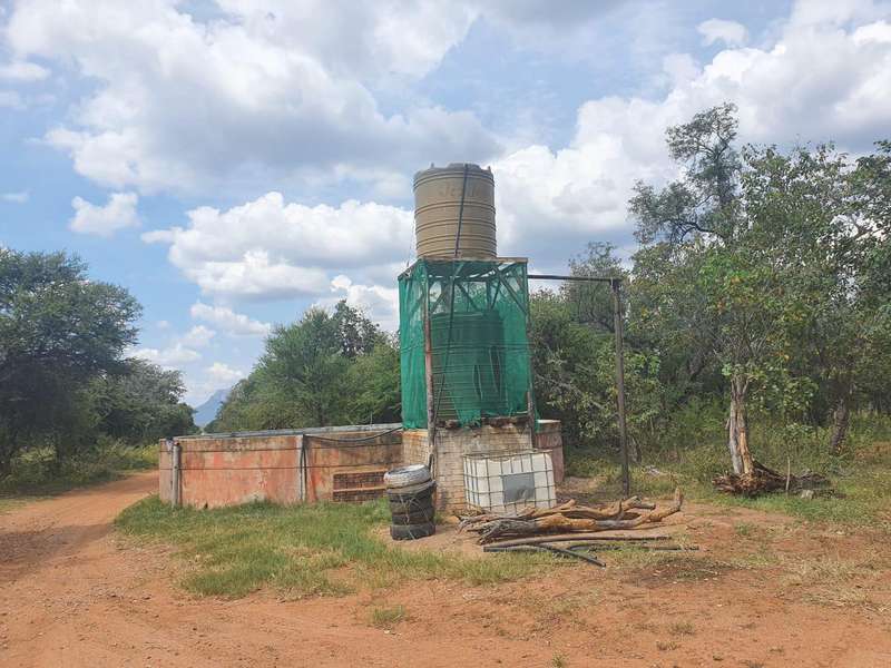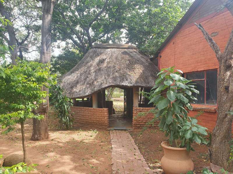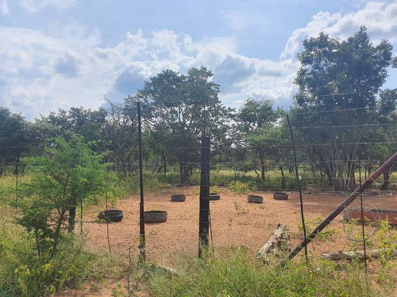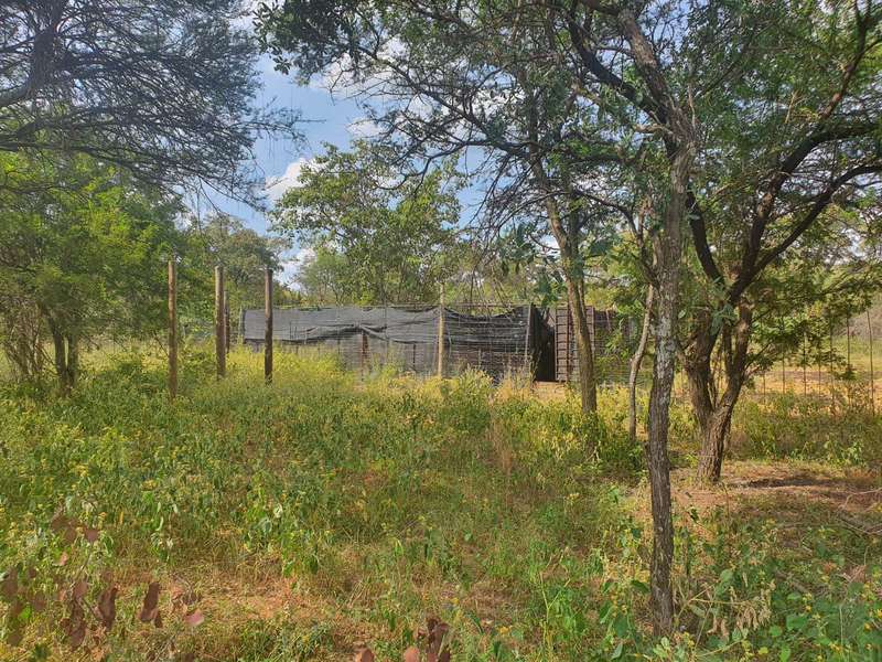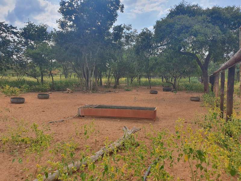 Baie mooi 4 slaapkamer grasdak huis met 3 badkamers, studeerkamer, sitkamer, eetkamer en kombuis. 1 Chalet en 1 werkershuis. Die plaas is baie toegangklik, aangesien dit naby die dorp en teen die teerpad le. Gelykplaas met 1/4 rooi leemgrond en 3/4 sandveld. Groot verskeidenheid bome onder andere Maroela, Rooibos, Wilde kweper, Vaalbos, Hardekool, Wilde Sering, Huilboom, Vals Maroela en Krinkhout. Wild: Rooibokke, Koedoes, Blouwildebees, Buffels, baie klein wild en Varke. Jagkamp: Slaap 8 mense volledig met kombuis en ablusiegeriewe. Kamp het lekker atmosfeer en is met sonkrag toegerus. Volledige kombuis met yskas en vriesfasiliteite. Groot toe stoor ingerig vir slag- en vleisverwerking. Kleiner tweede oop stoor met pakkamers en werkskamers. 1 Groot werkershuis, 1 sementdam en 4 gronddamme. 2 Boorgate waarvan 1 toegerus is met 3 fase dompelpomp wat ongeveer 2000 liter per uur lewer. 1 Eskompunt van 50 KVA. 2 Teelkampe waarvan 1 x 8 hektaar is en 1 x 80 hektaar, wat as buffelkamp dien. Hamermeule en 'n voermenger ingesluit. Die plaas is in 'n Beslote Korporasie en is wel vir BTW geregistreer.