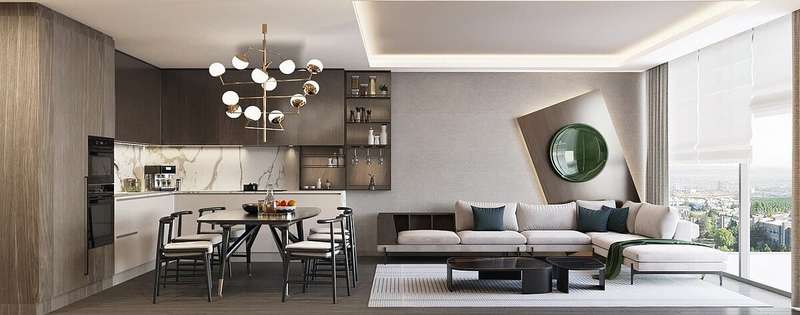 The project has apartment options offering 15 different floor plans suitable for different needs. These options include 2, 3, 4 bedroom apartments and 3, 4, 5 bedroom duplex apartments. The apartments consist of living areas such as living room, American or separate kitchen, bathroom and en-suite bathroom, dressing room, terrace, laundry room, storage room/pantry and balcony. The stylishly designed apartments have modern and comfortable details such as share meter heating system, built-in kitchen set, quality laminated parquet and wet flooring.