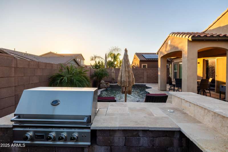 Step into this breathtaking home that is Perfect for buyers seeking turnkey, resort-style living in the desirable Greer Ranch community. Spanning 2467 sq ft, this home embodies open-concept living, plantation shutters throughout and high ceilings and upgrades. The gourmet kitchen features rich granite countertops, walls ovens and large island that is perfect for entertaining.Generous sized primary bedroom is a true retreat and the primary bathroom includes dual vanities and gorgeous upgraded walk in shower. In addition to the three spacious bedrooms, this home boasts two large bonus rooms that provide endless possibilities.The entertaining backyard boast beautiful travertine pavers, outdoor kitchen and pool designed with a pebble tec finish and baja step offers a perfect place to relax