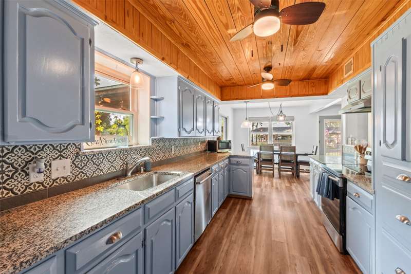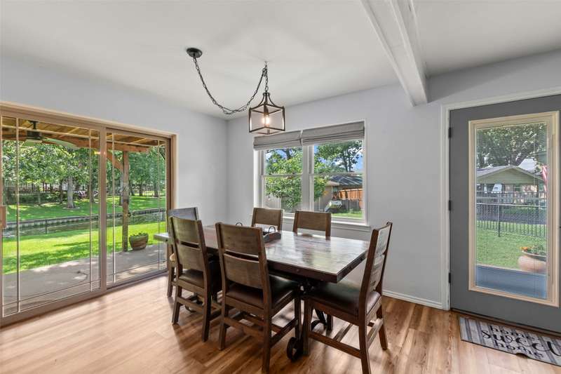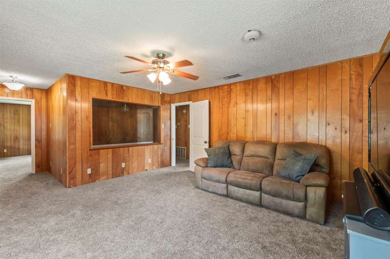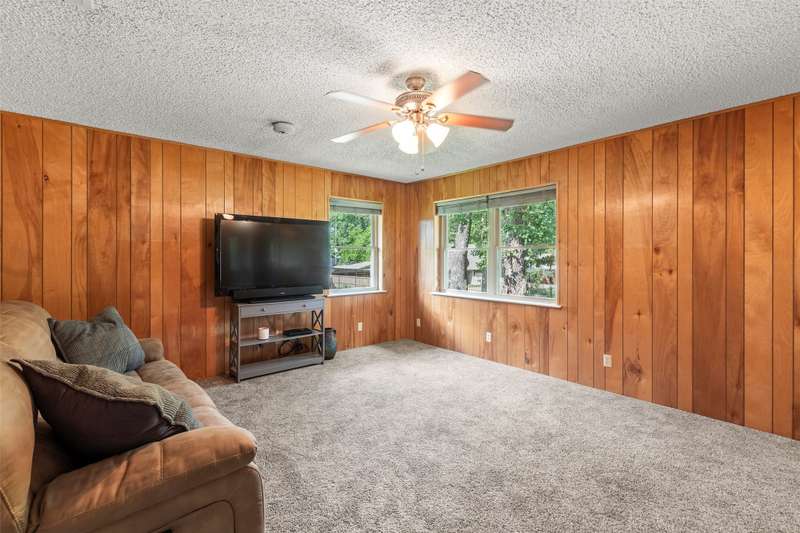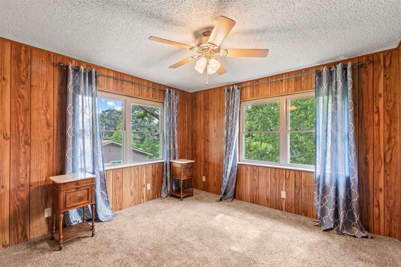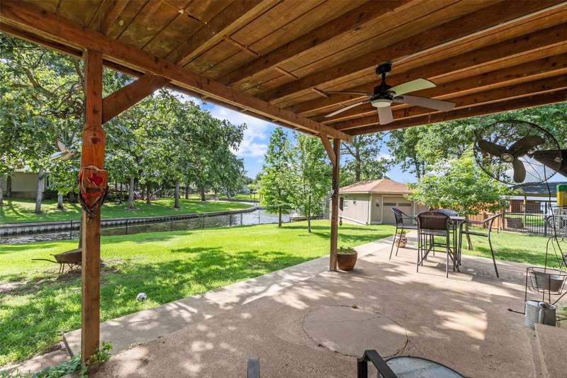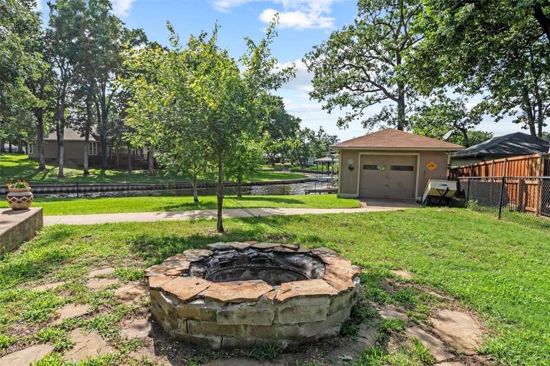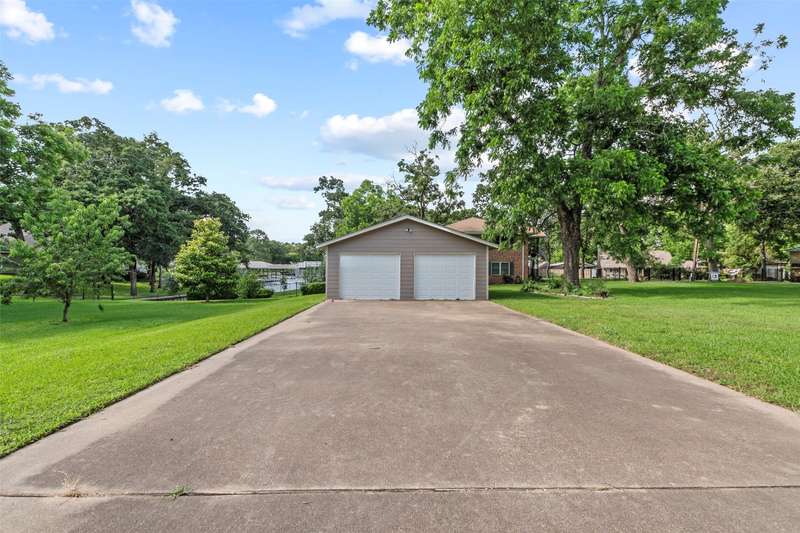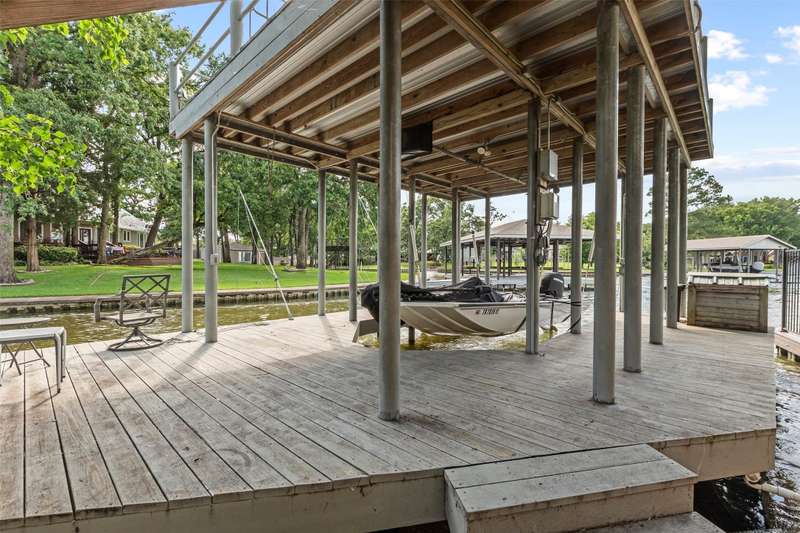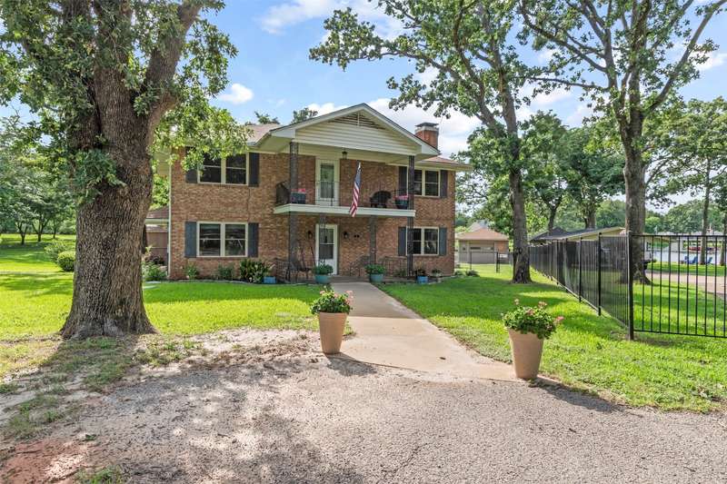 This well-maintained waterfront home is situated on three spacious lots totaling over half an acre, offering 125 feet of shoreline in a desirable neighborhood restricted to site-built homes. Third lot is a buildable lot where guest house, second home or additional garage could be built. There is also room to expand existing garage. The main floor was tastefully remodeled in 2022, featuring luxury vinyl plank flooring, all-new electrical wiring with an updated breaker box, and freshly retextured and painted walls. The main-level bathroom is fully handicap accessible, complete with a new walk-in jetted tub and custom vanity. The living room includes a wood-burning fireplace with a blower, adding warmth and energy efficiency.In addition to the main floor bedroom and bath, the upper level includes three bedrooms, a full bath, and a versatile bonus room that opens to a private balcony. This flexible space is perfect for use as an additional living area, game room, or bunk room. Over the past few years, the home has seen numerous upgrades, including all new windows and doors, newly poured concrete walkways, and a covered patioperfect for outdoor relaxation. A brand-new roof was installed in 2025. The fully fenced yard includes a firepit area and is served by a new lake pump installed in 2024 that feeds an automatic sprinkler system covering the entire yard. A long driveway provides ample parking for multiple vehicles and leads to an oversized detached garage, newly equipped with electric in 2024, large enough to accommodate trucks and a bass-sized boat. The 2020 boathouse features a spacious party deck with spectacular open water views and an automatic remote-controlled boat lift. Two lakeside storage sheds, both with concrete floorsone with 220V poweroffer great space for storing water toys, yard equipment, or workshop tools. Includes furnishings with some exclusions. Short Term Rentals Prohibited.
