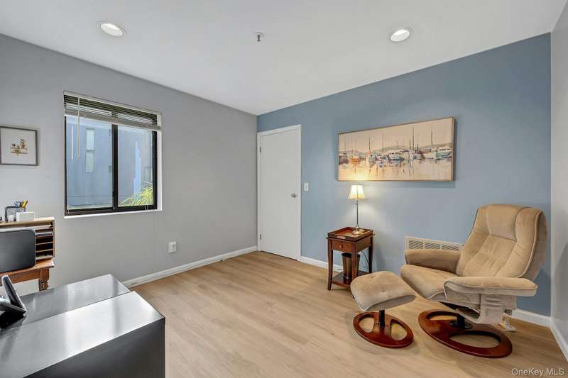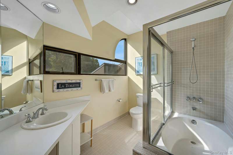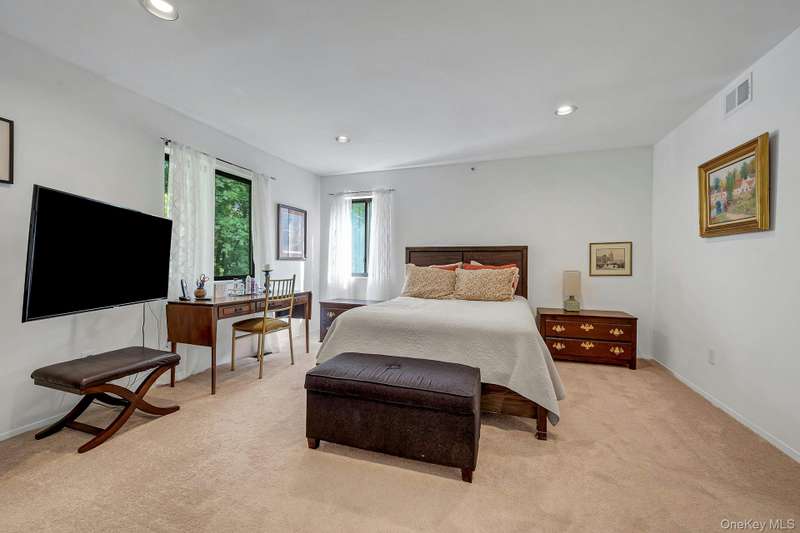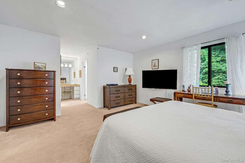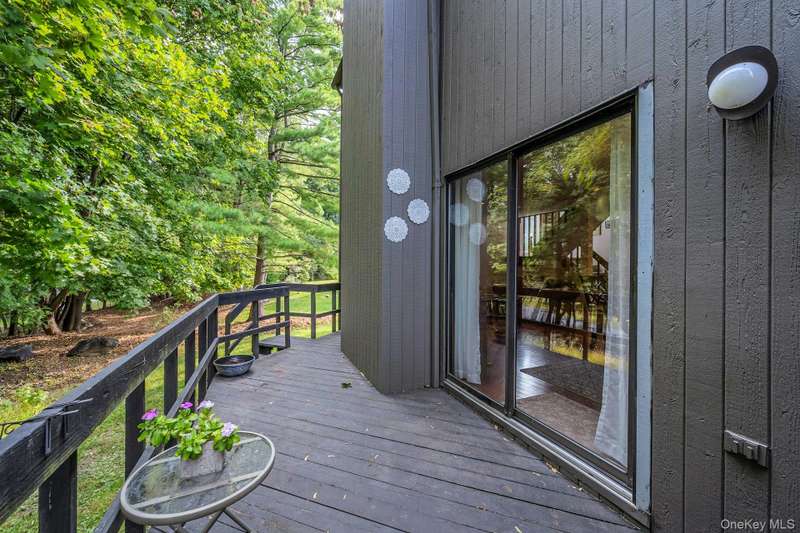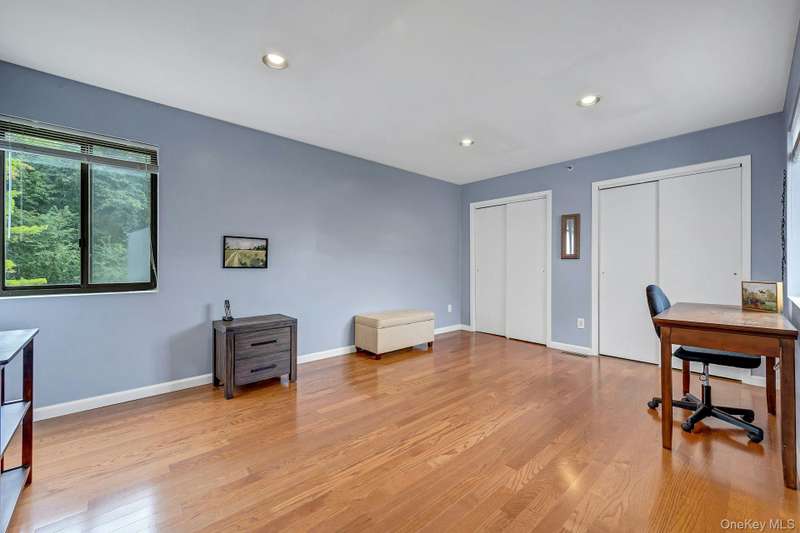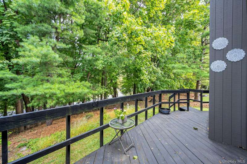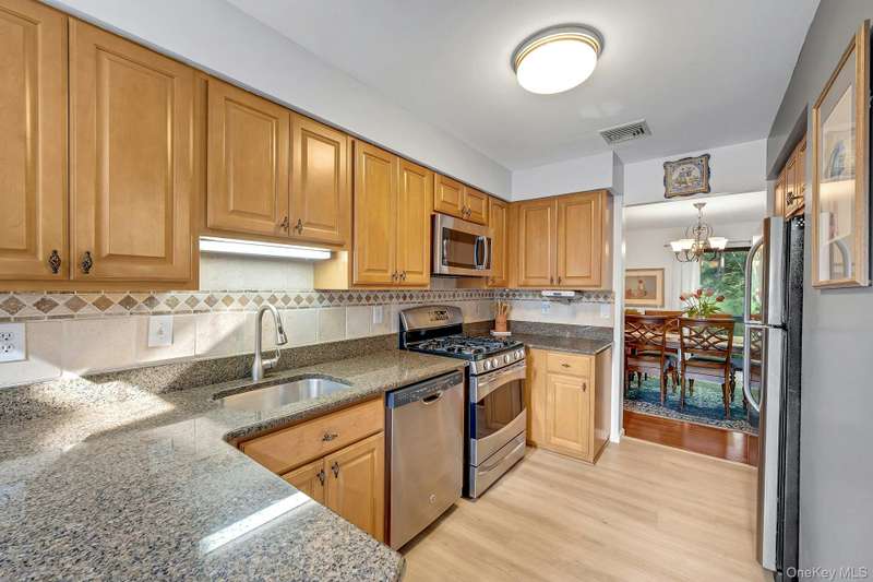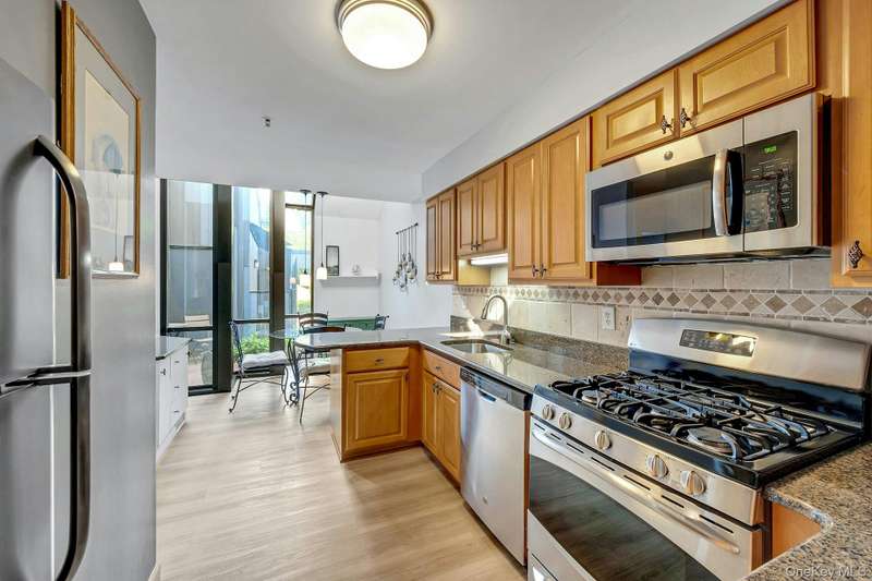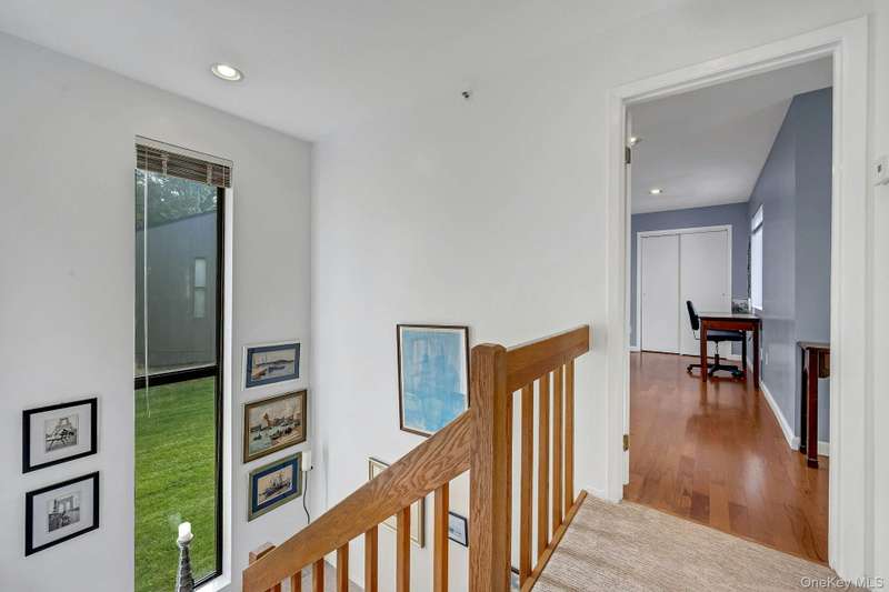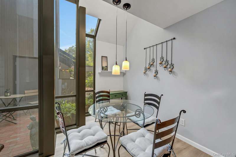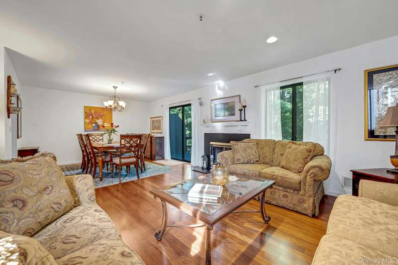 Welcome home to this updated end unit in the sought-after Stone Oaks community of Hartsdale. The main level features an open floorplan with lovely hardwood floors, & warm recessed lighting throughout. The spacious kitchen features stainless steel appliances, granite countertops, ample cabinetry and a stunning dining nook with floor-to-ceiling windows that fill the space with natural light. The living and dining area features a cozy wood-burning fireplace. There are sliding glass doors leading to a private deck,-perfect for relaxing or entertaining outdoors. The first floor also includes a versatile office/den, windowed half bathroom, a laundry area with direct access to an spacious attached two car garage. Upstairs you'll find two generous bedrooms. The primary suite offers a walk in closet and a separate vanity/dressing area, primary bathroom with double vanity while the second bedroom is bright and spacious with abundant closet space and it's own en-suite bathroom. Stone Oaks is a p