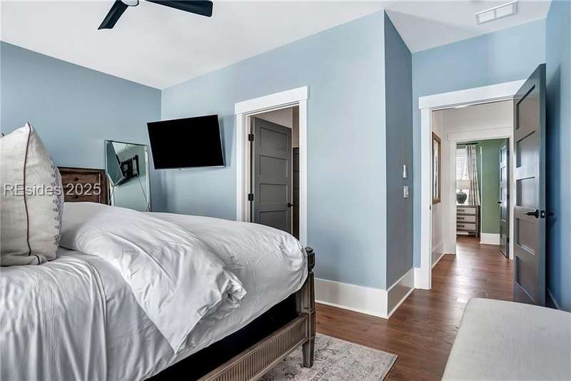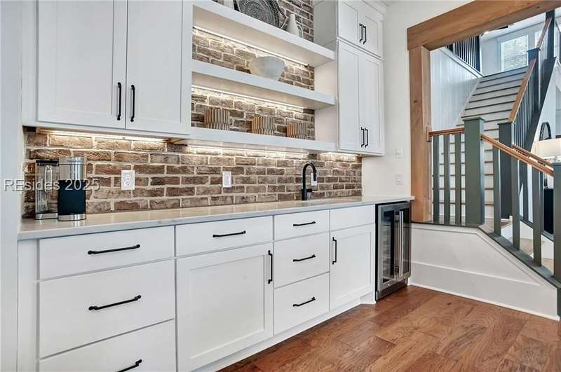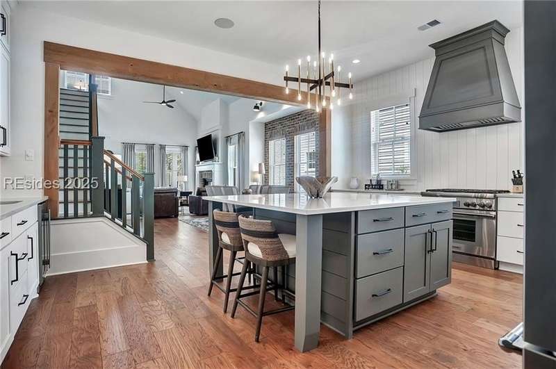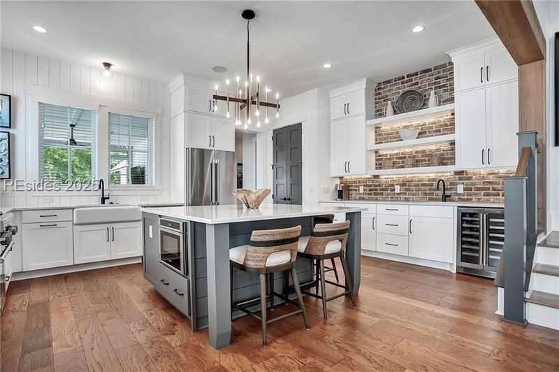 New to the market! 776 Old Moreland Road boasts 5 bedrooms, 4.5 baths, including two downstairs en suites, a sprawling kitchen, dining and living spaces and screened and open porches. Perfect for hosting family and friends, the upstairs has two more large bedrooms, plus a bunk room and lofted living space. Nestled in the heart of Moreland Village and steps from two pools, fitness center, restaurants and bottle shop, this short-term rental eligible home is the ideal coastal getaway—close to the best Palmetto Bluff has to offer!