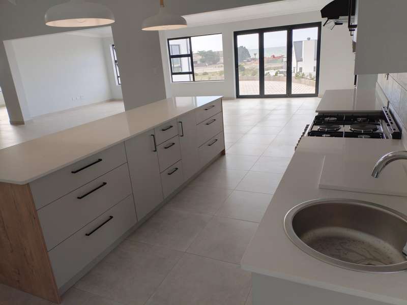 Don't miss out on this brand new house in the sought-after Da Gama Bay, offering stunning sea views! If style and spacious living are what you desire, this property is a must-see. This thoughtfully designed home offers exceptional comfort and is perfect for family living. From the moment you step inside, an abundance of natural light creates a warm and inviting atmosphere. The residence boasts three spacious bedrooms, including a luxurious main bedroom complete with a walk-in closet and a generously sized en-suite bathroom. At the heart of the home, a beautiful open-plan kitchen awaits, impressively equipped with a six-plate stove featuring four gas burners and two electric plates. A large, separate scullery provides ample space for all your appliances. The living areas are generously proportioned and flow seamlessly, creating an ideal space for relaxation and entertaining. The dedicated braai area, with its built-in braai, offers stunning views over St Helena Bay. Opening the patio doors reveals a paved outdoor area, effortlessly extending the living space and enhancing the home's beautiful flow. Adding to its versatility, a separate flatlet with its own entrance is perfect for guests or extended family. This well-appointed space includes a bathroom, a kitchenette, and its own built-in braai. This truly is a lovely and well-conceived design. For your convenience, the double garage features automated doors and provides direct entry into the home. Additional features include a gas geyser for energy efficiency. The property is neatly paved all around, leading to a private backyard with a dedicated space for washing lines. At Chas Everitt Properties, we distinguish ourselves by offering both sellers and buyers a truly unique and professional experience. Our status as an international property group underpins our consistent delivery of expert service. Nestled on the picturesque West Coast of the Western Cape, St Helena Bay is a haven of tranquility and natural beauty. This charming fishing village curves around a calm, azure bay, renowned as one of the world's premier sailing and watersport destinations. Historically significant as the first landfall of Portuguese explorer Vasco da Gama in 1497, today St Helena Bay offers a peaceful escape and a unique coastal lifestyle. The bay itself is a sanctuary for marine life, frequently visited by dolphins and, in season, Southern Right whales that come to calve in its sheltered waters. Birdwatchers will also delight in the abundant avian species. Residents and visitors alike are drawn to its unspoiled beaches, perfect for leisurely strolls, fishing, kayaking, and surfing. The area boasts a collection of charming small communities, each with its own character, contributing to a relaxed and welcoming atmosphere. Whether you're seeking a permanent residence or a holiday retreat, St Helena Bay offers an idyllic setting where stunning sunsets, the gentle rhythm of the ocean and a close-knit community spirit define everyday life. It's a place where the rugged beauty of the West Coast truly comes alive. Call me to arrange your viewing of this prestine property in our beautiful West Coast.