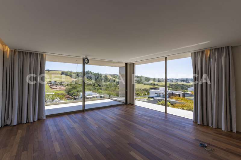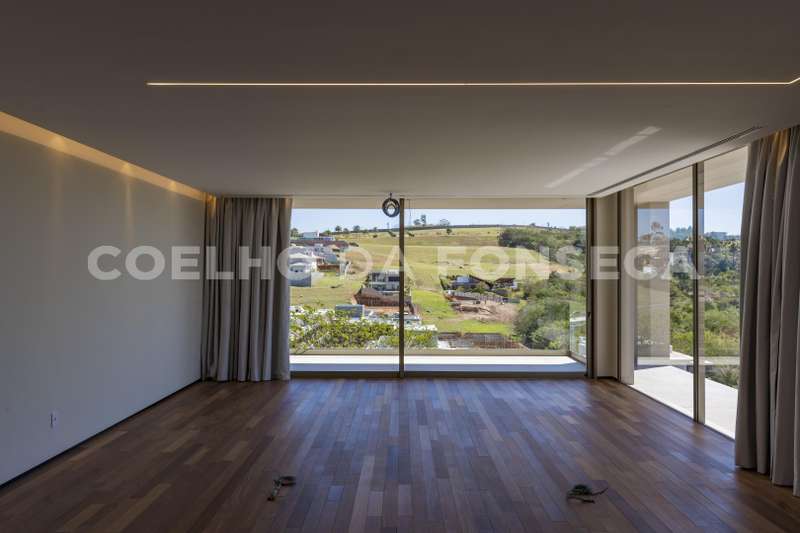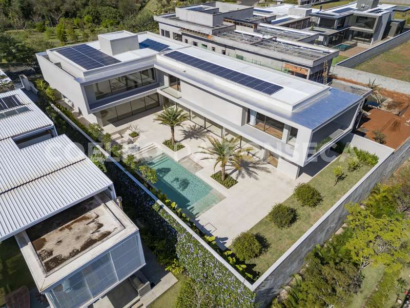 Esta residência de altíssimo padrão, com arquitetura moderna e design sofisticado, oferece uma vista que encanta. O living espaçoso se integra harmoniosamente com o espaço gourmet, criando um ambiente perfeito para receber amigos e familiares. Desfrute de momentos relaxantes na piscina, sauna ou junto à lareira, em meio a um paisagismo exuberante. No piso superior, uma sala íntima proporciona privacidade, enquanto as 4 suítes, incluindo uma Master com vista de tirar o fôlego, oferecem o máximo de requinte. Elevador, automação residencial e acabamentos impecáveis encontramos em cada detalhe.