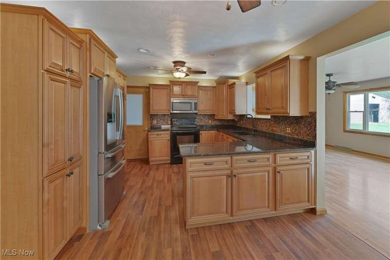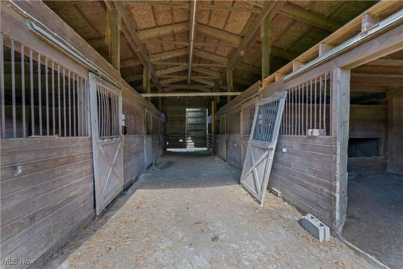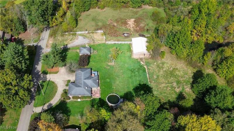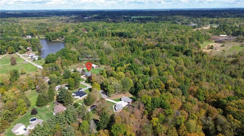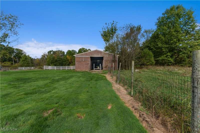 This rare Vienna Township estate has it all- over 38 stunning acres, a 3-bedroom/3-bath brick ranch, a separate studio apartment, a barn with fenced pasture, and your own lakefront paradise with multiple spring fed ponds and direct access to Girard Valley Park Lake. The main house offers almost 1,700 sq ft of comfortable living space and features an updated eat-in kitchen with maple cabinets and granite countertops. The well-designed floorplan flows from the bright living room to the den with built-in bookshelves, an electric fireplace, and a newer picture window overlooking the picturesque backyard. The primary bedroom includes its own private en suite bathroom with a tiled walk-in shower. Two well-sized bedrooms with large closets and another full bathroom complete the main level. The waterproofed basement- with a third full bath- adds potential for a gym, workshop, or bonus space and has a brand new furnace. Two concrete back patios and an above-ground pool invite outdoor relaxation, while a Generac whole-house generator, 2-car attached garage with wheelchair lift, and circular concrete driveway add convenience. Just steps away, the brick studio apartment includes a living space, kitchen, and bathroom- ideal for guests, multi-generational living, or as an income-producing rental. The barn has a metal roof, and the fenced pasture is ready for horses, livestock, or hobby farm use, with plenty of parking near both the barn and guest unit. Ownership of the southern third of Girard Valley Park Lake and four more scenic ponds offers unmatched water access for year-round outdoor enjoyment. Whether you're reeling in fish, tending animals, or simply enjoying the peace and privacy of wooded acreage, this property delivers a hard-to-find mix of natural beauty and freedom in Mathews School District. Don't miss your opportunity to live the lifestyle you've dreamed of in a fantastic location only minutes from the Youngstown-Warren Regional Airport, shopping, schools, and more!