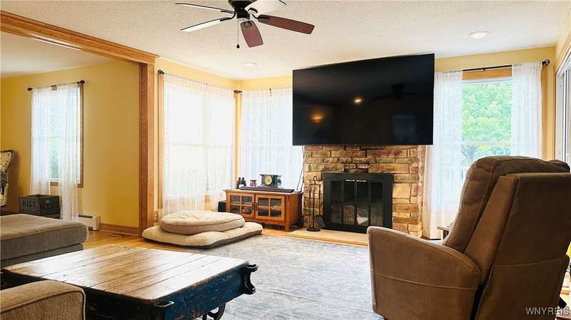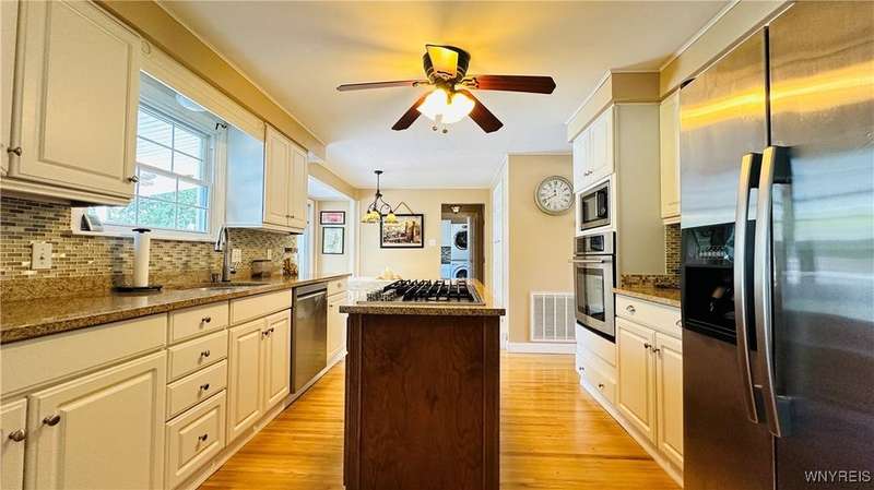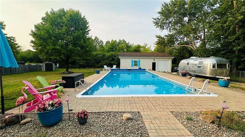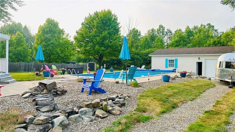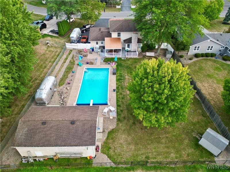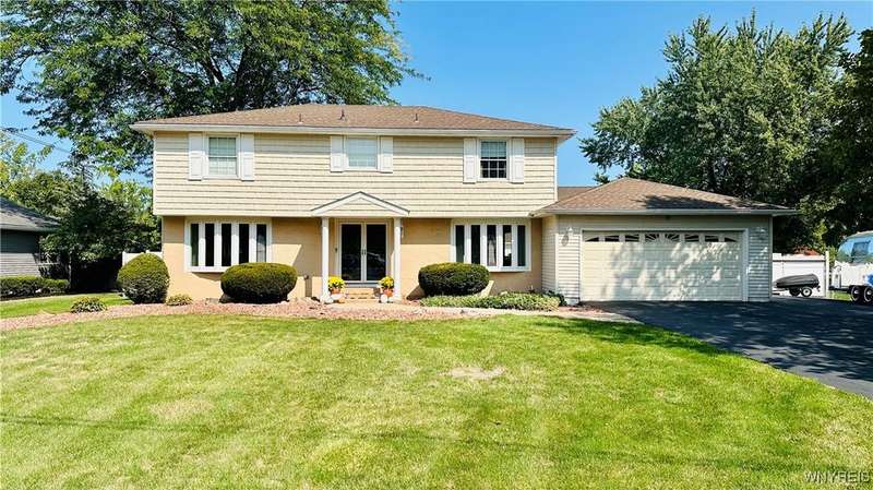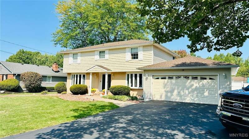 Welcome to 575 Morgan Dr, Lewiston, NY ? A spacious and beautifully updated 2-story home offering 4 bedrooms, 2.5 bathrooms, and 2,262 sq ft of comfortable living space. The inviting living room features a cozy fireplace and large windows that bring in plenty of natural light. Hardwood floors run throughout the bedrooms, and all bathrooms have been tastefully updated. The kitchen is ideal for both everyday use and entertaining, with a large center island, built-in gas cooktop, built-in oven, and solid surface countertops. Step outside to enjoy a fully fenced backyard with a beautiful inground pool, a large patio, a shed for additional storage, and space to relax or entertain. The attached 2-car garage provides convenience, while a second detached garage in the backyard?currently used as a workshop?offers heat, and water, making it perfect for hobbies, work, or extra storage. Additional highlights include updated windows throughout, a modern tankless hot water heater, and excellent natural light throughout the home.