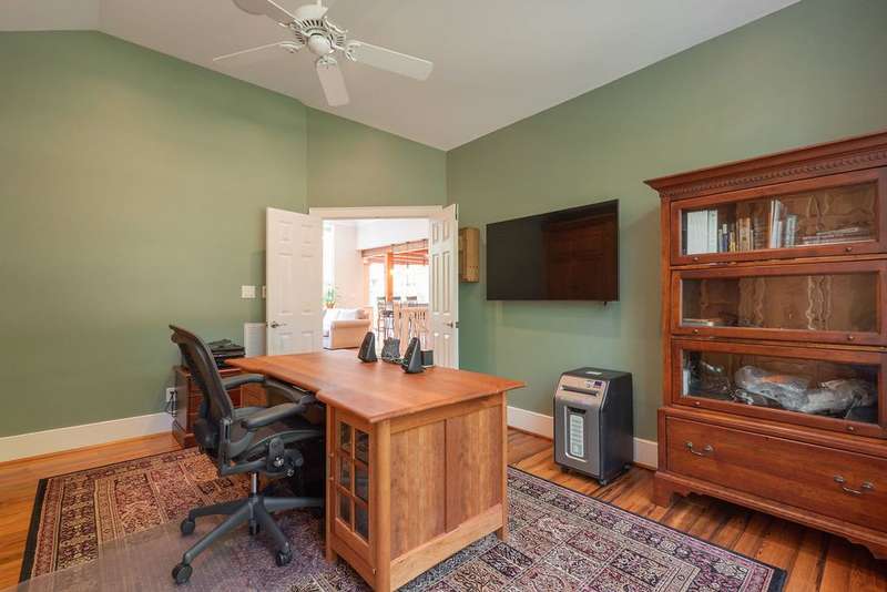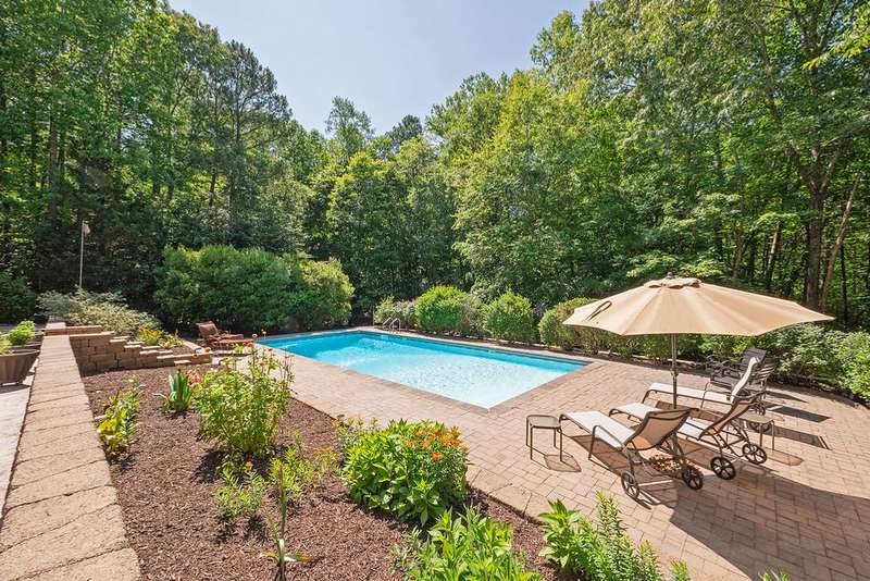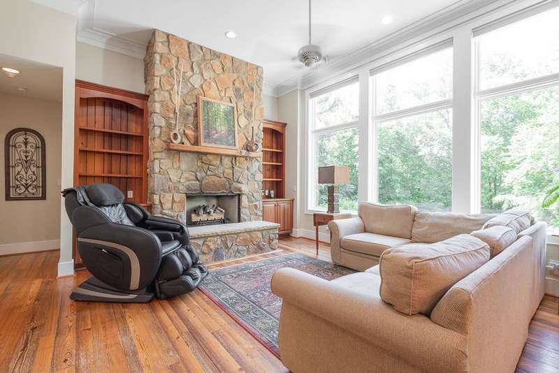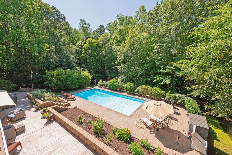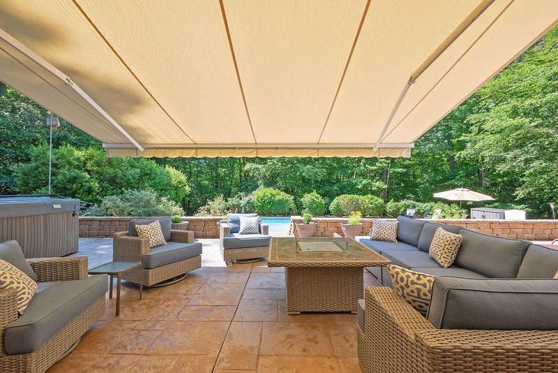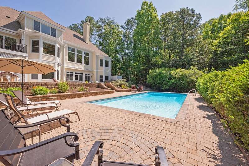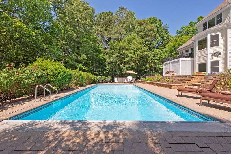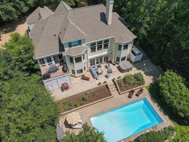 Your private retreat awaits in Stonehouse@Mill Pond! This stunning, custom built 5BR, 3.2 bath home by PF Summers offers luxurious living inside & out-surrounded by mature woods & designed for comfort, entertaining & everyday ease. The main living area showcases a dramatic stone FP, custom bookcases, and expansive windows that create a serene, treehouse-like atmosphere. The open layout floors into a gourmet kitchen, a sunroom and opens to a balcony overlooking the backyard. The main level also features a formal dining rm, mudroom, laundry, and a home office w/french doors & custom bookcases. The primary suite has 2 walk-in closets, a jack & jill bath w/dual vanities, jetted tub, and walk-in shower. Upstairs are 2 spacious bedrooms w/walk-in closets, jack & jill bath, a state-of-the-art home theater w/10x12 screen, Sony 4K projector, 8 electric reclining seats, built-in surround sound, and bar seating for 3. The walk-out basement has a kitchenette, rec room, built-in entertainment center, 2 bedrooms, full bath, & ample storage. outside there is a heated salt water pool, a hot tub, remote controlled awnings on the patio & upper balcony. The balcony also has a gas hookup for gilling.