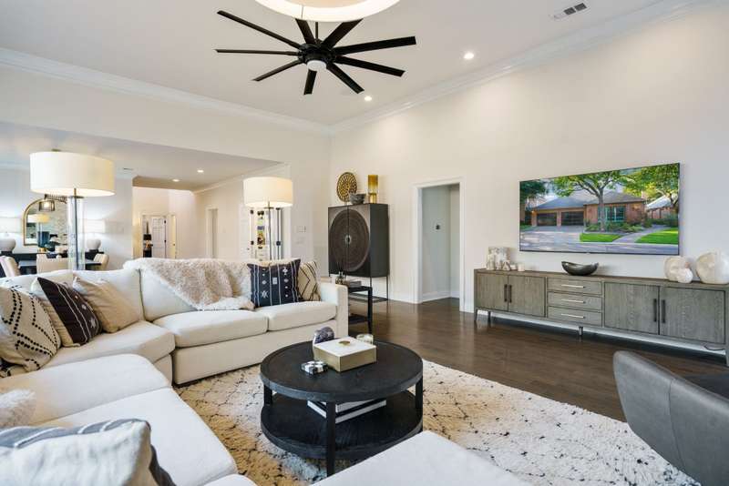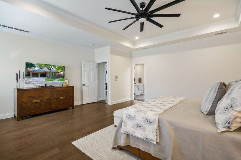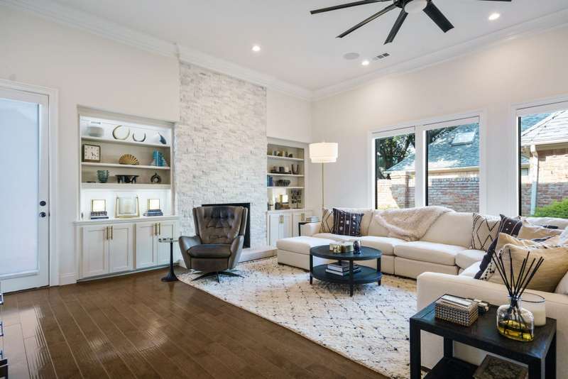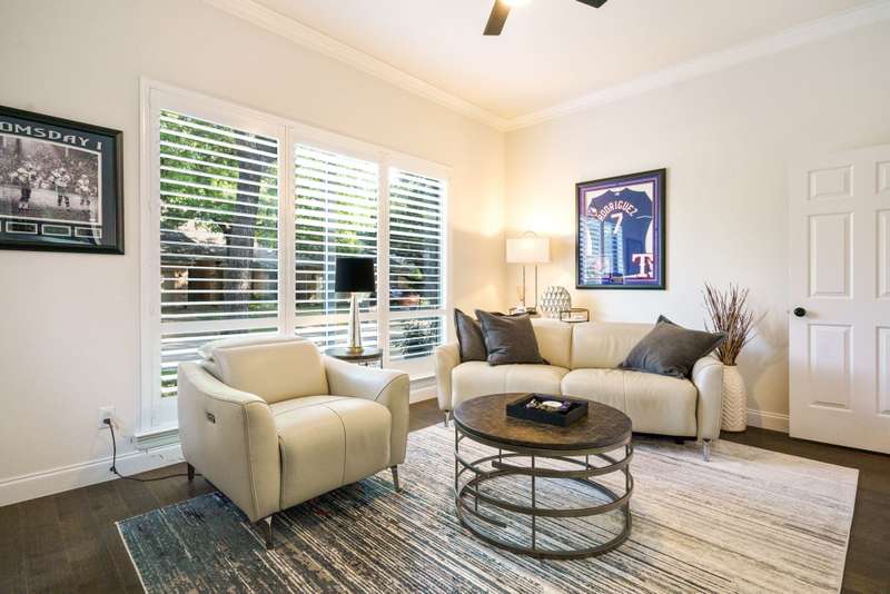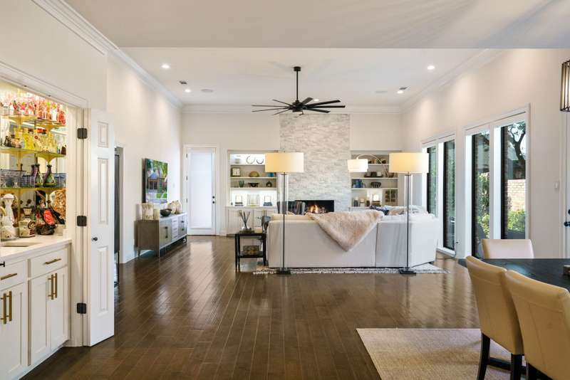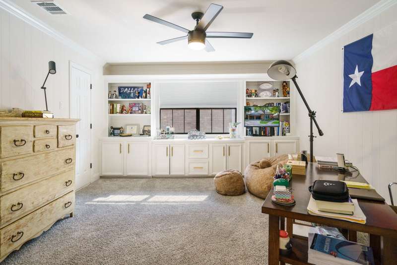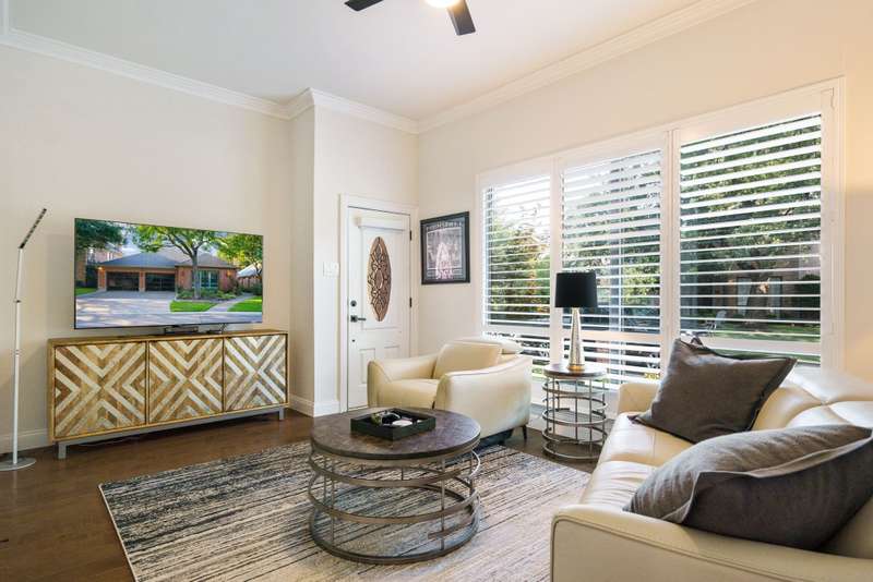 Completely remodeled in highly sought-after Bent Tree Village, this stunning home pairs modern updates with an exceptionally flexible floor plan thats rarely found. The curb appeal immediately stands out with sleek new modern glass garage doors, lush landscaping, and fresh windows across the front of the home. Inside, the spacious great room impresses with a formal dining space, wet bar, floor-to-ceiling stacked stone fireplace, built-in speakers, walls of new windows with electric shades, and dual access to multiple patios, making it perfect for entertaining. The main-level primary suite is a private retreat with plantation shutters, blackout shades, two walk-in closets, and a spa-inspired bath featuring a frameless shower, freestanding soaking tub, and dual vanities. A unique highlight is the additional first-floor guest suite, which lives like a second primary with its own living area, full bath, large closet, and private entranceideal for multi-generational living, long-term guests, or even a dedicated office with client access and a separate waiting area. The chefs kitchen offers quartz countertops, double ovens, bar seating, a large pantry, a breakfast nook, and access to a charming courtyard perfect for grilling. Upstairs are three additional bedrooms and two full baths, providing abundant space and privacy. Even the garage is a showstopper, with side-mounted openers, overhead storage with power winch, epoxy flooring, a Tesla fast charger, and those stunning new glass doors. Outdoors, the low-maintenance yard boasts artificial turf, wrought iron fencing, multiple sitting areas, and views of the peaceful greenbelt. Perfectly located near the Tollway, Addison, shopping, dining, Addison Airport, and Bent Tree Country Club, this home truly has it allstyle, function, and an unmatched lifestyle.