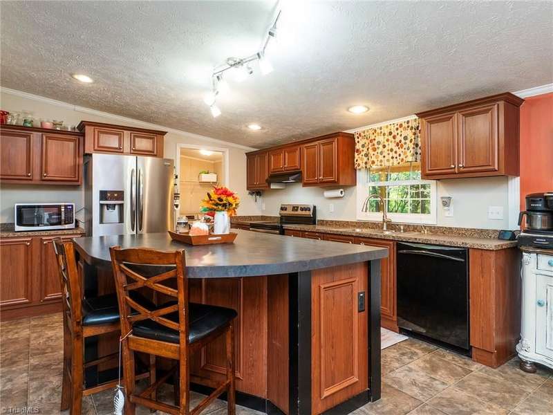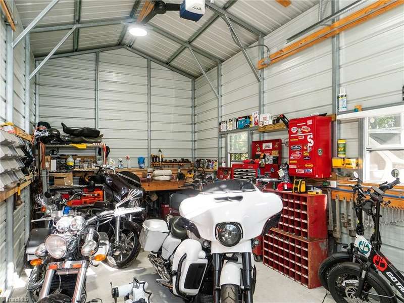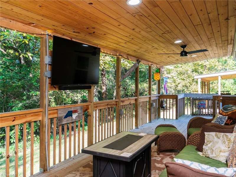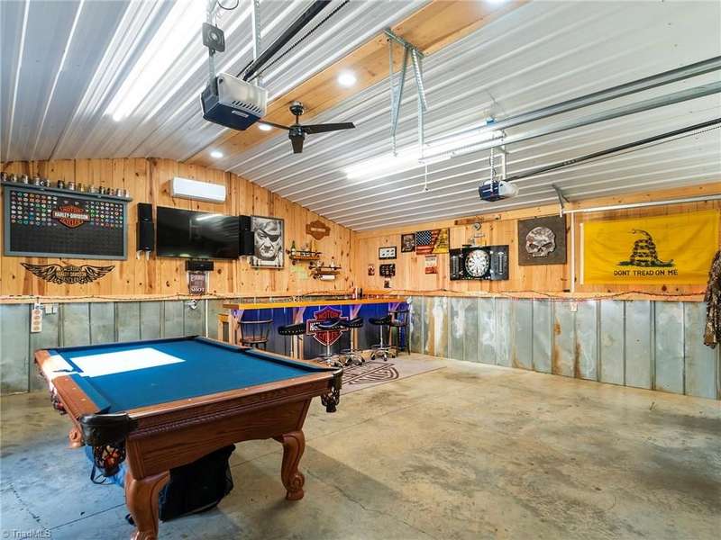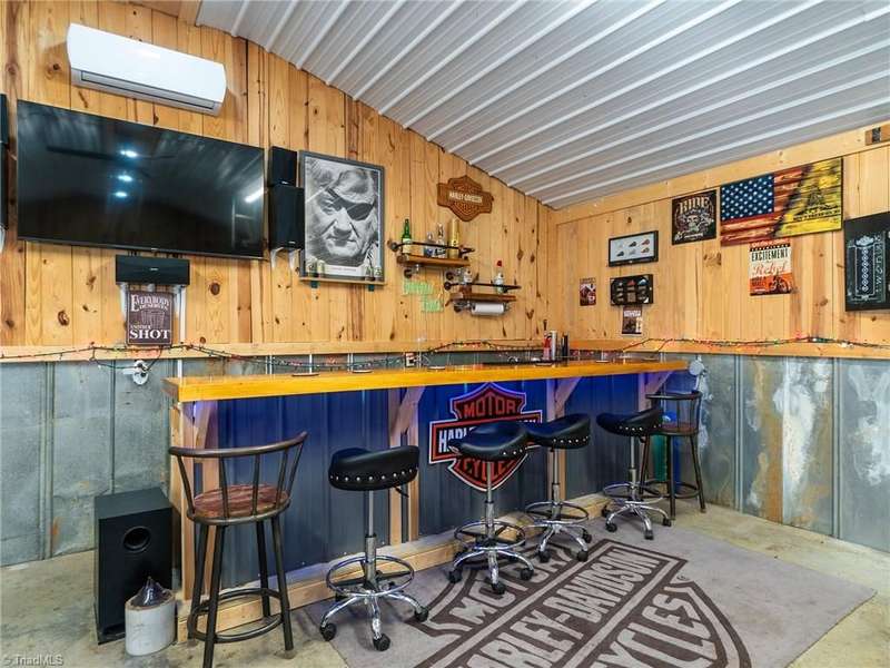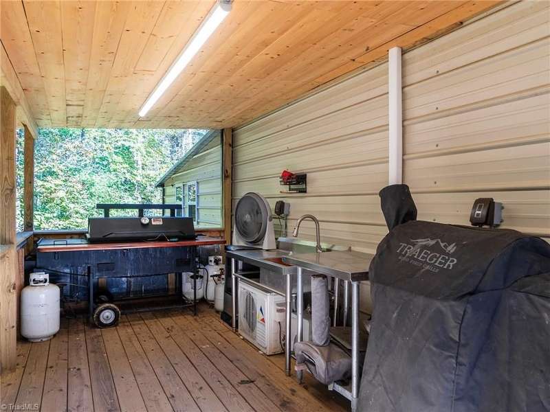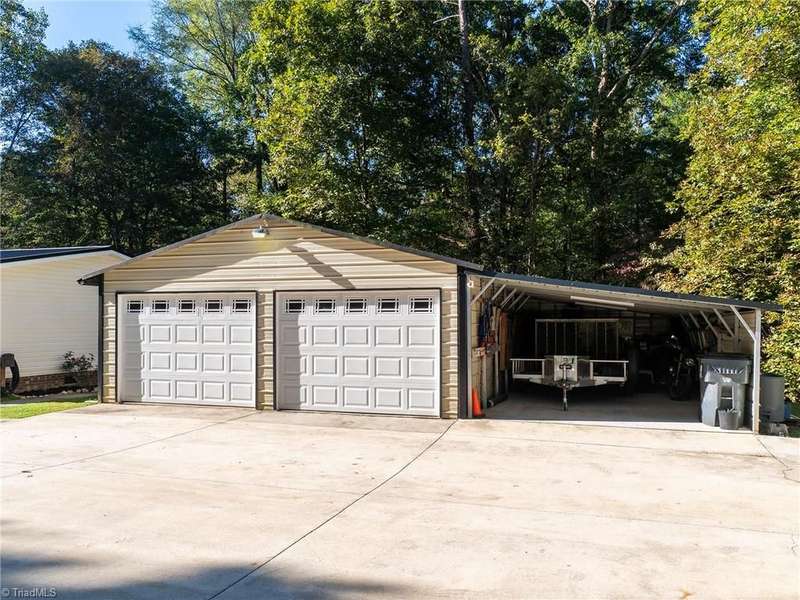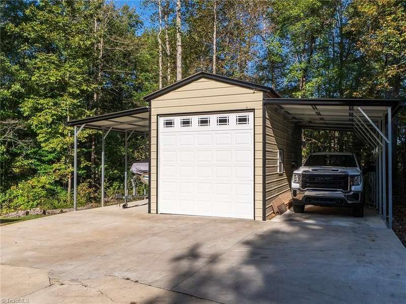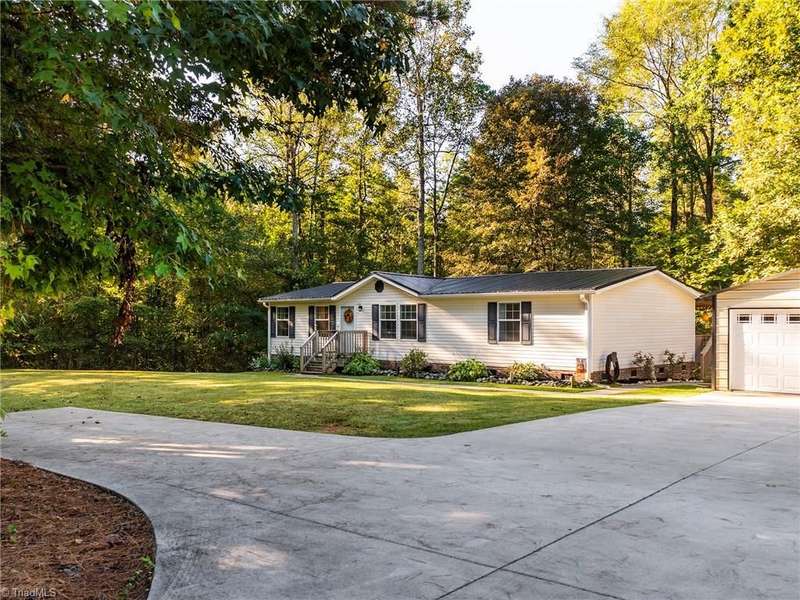 A True Country Oasis in Alamance County! Situated on 2.72 private acres, this well-maintained 3BR/2BA home blends comfort and outdoor enjoyment. Features include a new metal roof (2022) and a 48'x10' covered back porch with mounted TV?perfect for relaxing or entertaining. Enjoy the hot tub in its own covered area and a 24'x25' detached 2-car garage with mini-split heat pump, pool table, bar, refrigerator, and mounted TV. A covered grilling area, 12'x25' detached garage, 8'x10' storage building, extended parking pad, and three carports provide great flexibility. Home includes a water filtration and softener system, and the washer, dryer, refrigerator, and mounted TVs remain. The wooded area includes a deer stand and feeder. A peaceful, private retreat?perfect for outdoor enthusiasts and those with plenty of recreational toys!