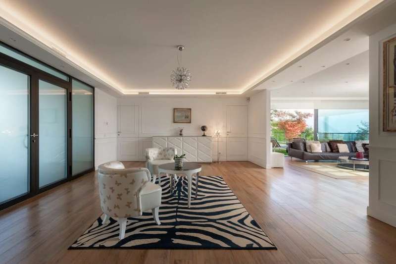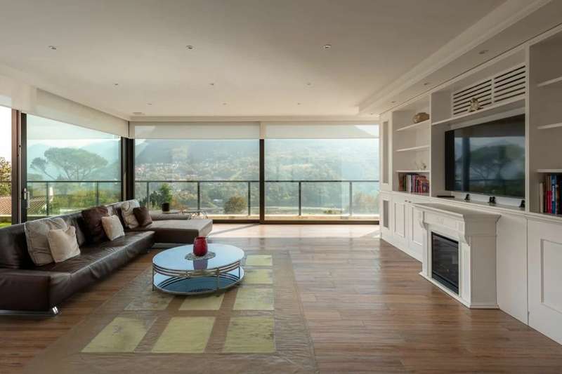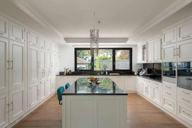 Nestled in the heart of Collina d’Oro, just a short walk from the international TASIS school, this residence combines elegance, comfort, and natural light. On the ground floor, an entrance hall leads to the living and dining areas, opening onto the garden through large bay windows. The fully equipped kitchen with a large central island can accommodate a table for six, while the main dining room is reserved for special occasions. A dumbwaiter connects to the lower level. Two bedrooms with bathrooms and a versatile room complete this floor. The master bedroom features a bathroom with a bathtub, an office with a dressing area, and direct access to the garden. On the lower level, a wellness area includes a heated indoor pool, a glass-enclosed fitness room, a sauna, a steam bath, and a jacuzzi. An independent apartment and a private cinema complete this floor, along with a laundry room, technical room, and garage.