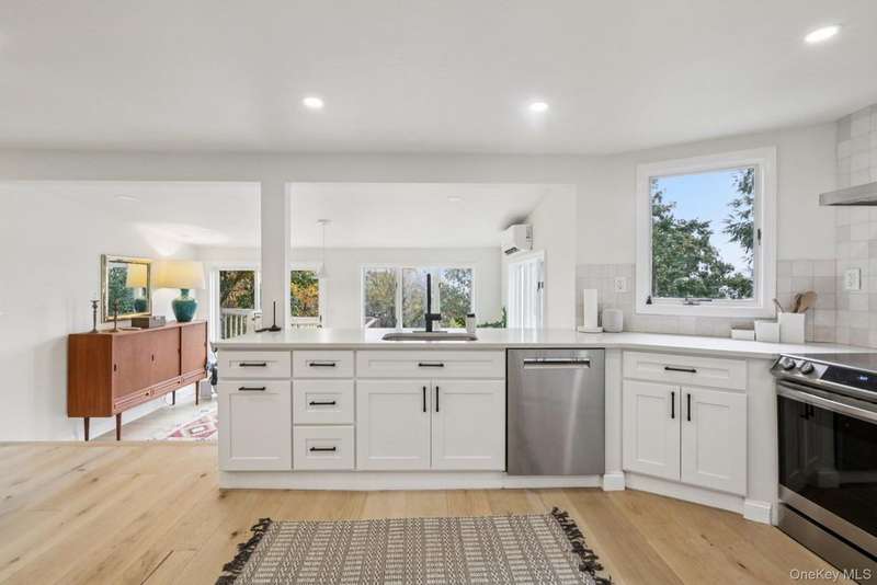 This stunning, fully renovated home blends modern luxury with lakeside tranquility. Inside, discover a designer gourmet kitchen featuring quartz countertops, custom walnut shelving, white shaker cabinets, a SMEG retro refrigerator, sleek new backsplash, stainless steel appliances including a Bosch dishwasher and a convection oven with air fryer and a stylish new oven hood. The open concept layout seamlessly connects the kitchen, dining, and living areas, creating a space ideal for both daily living and entertaining. The first floor offers two spacious bedrooms, a modern tiled bathroom, and a laundry area equipped with a GE Profile washer and dryer. The primary suite features generous closet space and a beautifully updated en-suite bath for added privacy and comfort. Upstairs, the sun filled bonus room offers a versatile space that can serve as a home office, media lounge, or exercise/yoga studio. Step onto the deck and soak in the peaceful landscaped backyard, Zen garden and flower boxes, all set against panoramic lake and mountain vistas. Additional highlights include mid-century light fixtures from Denmark, custom Roman shades, hardwood floors, new storm doors, updated entryway, a 26kW Generac whole home standby generator, new Hyper heat mini split units throughout, RING security system, voice activated smart lighting, newly paved driveway and an attached one car garage. Residents of Indian Park Association enjoy access to the lake with private beach and clubhouse, plus a second beach perfect for launching your kayak or paddleboard. Commute effortlessly to NYC, only an hour away with a bus stop right at the entrance. Experience lake living at its finest?where modern design, serene surroundings, and captivating views come together!