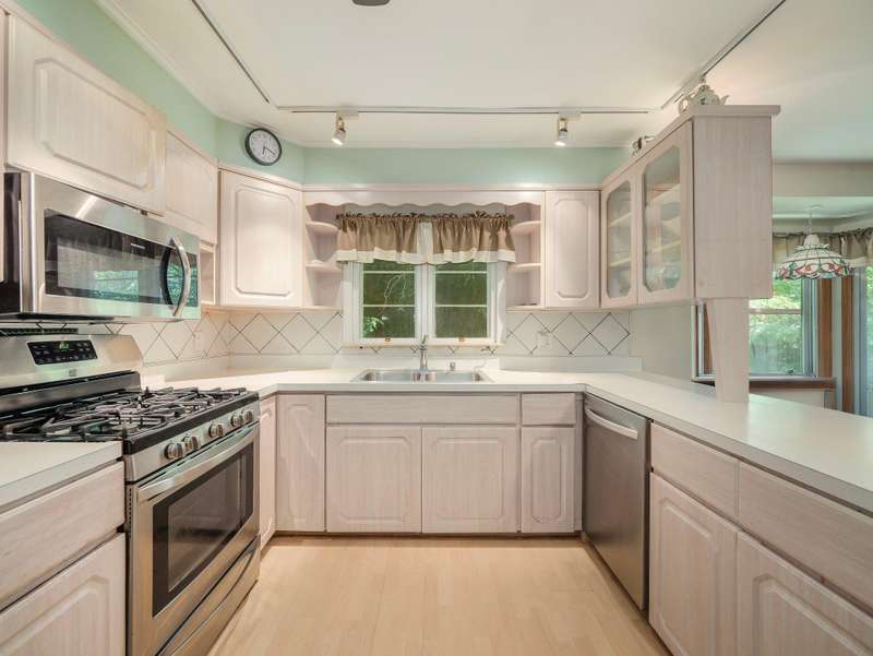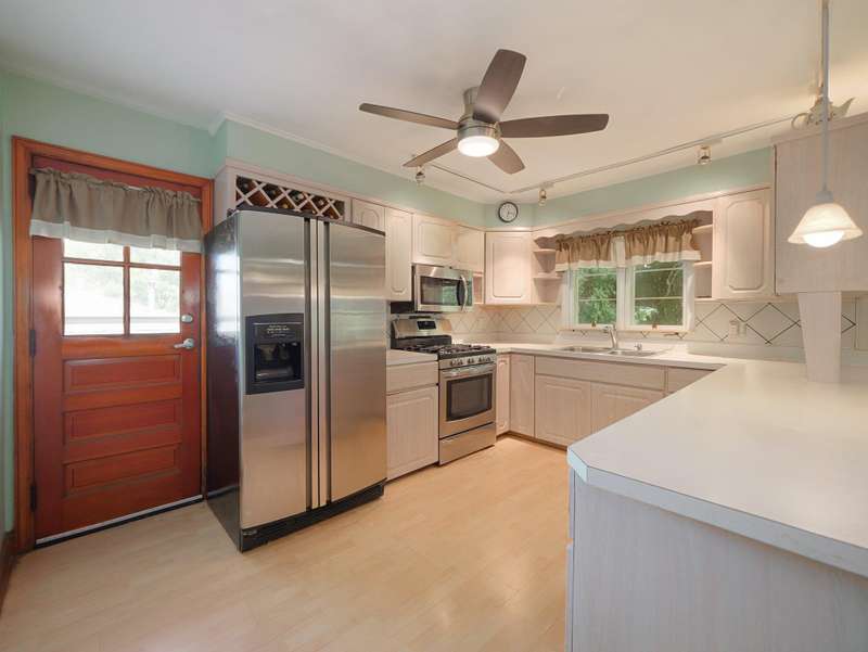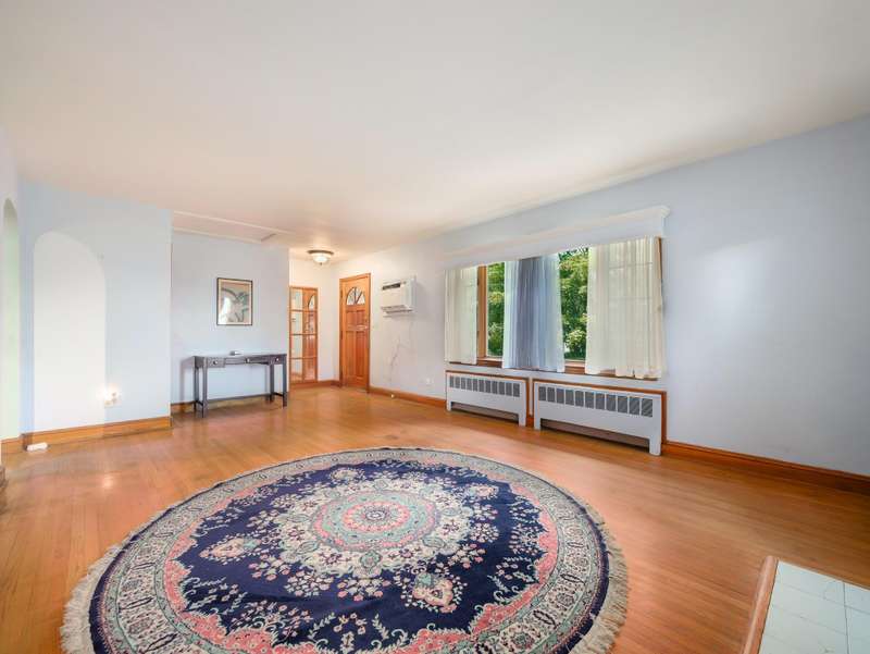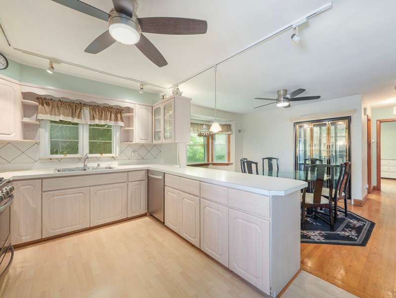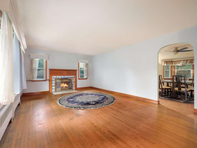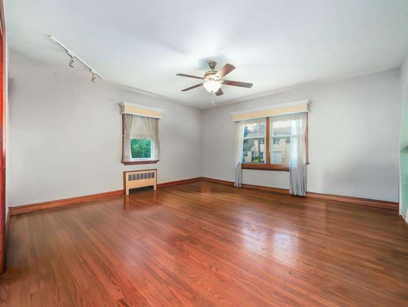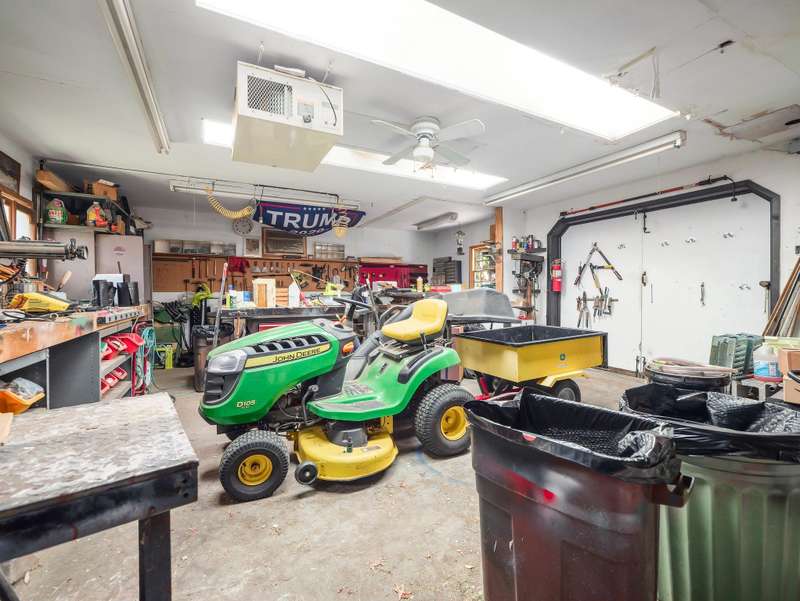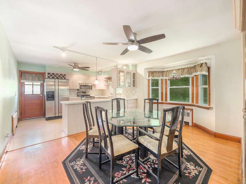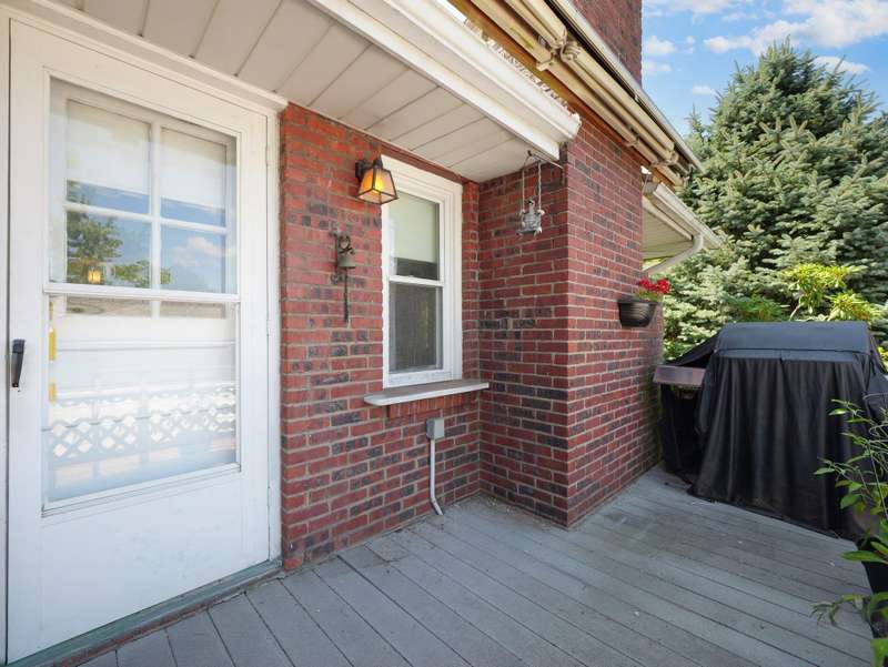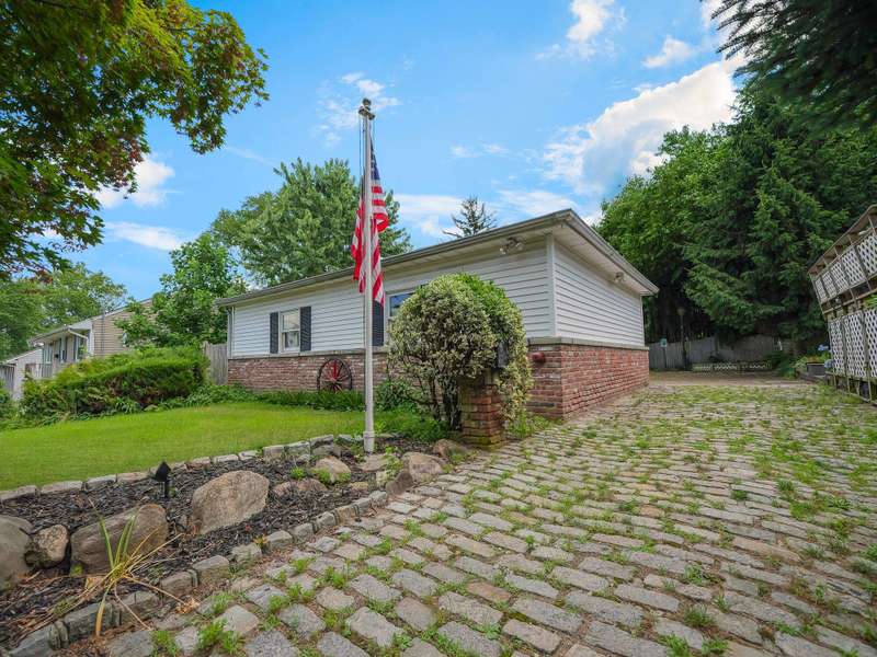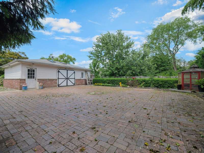 Charming Brick Ranch house features 2 spacious bedrooms, living room with fireplace, Eat in kitchen, full bathroom and washer dryer on 1st floor. Hardwood floor throughout, walk in closet in primary bedroom. Deck off kitchen with retractable awning. Legal 2nd kitchen in walkout basement with separate entrance. 2 year old furnace and hot water heater. Private backyard nicely landscaped storage shed, Koi pond, 2 greenhouses, and a 2 car detached garage that is currently a work shop. A handy mans dream. Paver driveway and parking lot in back.