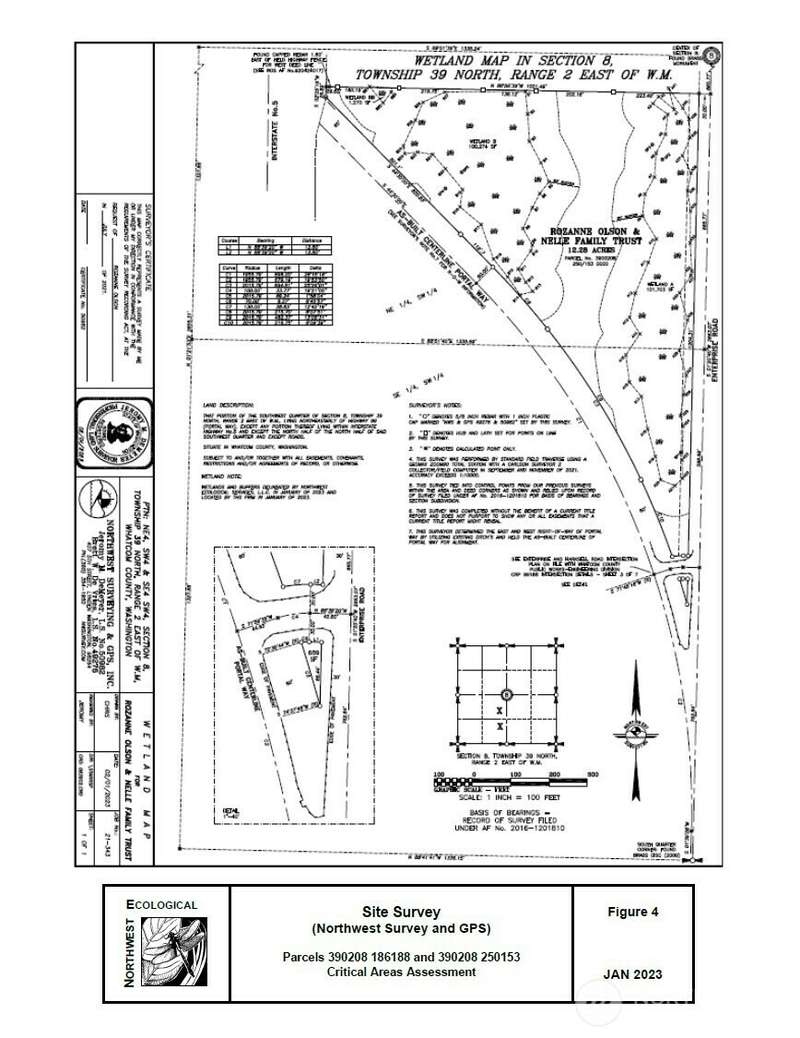 Critical assessment complete. Gorgeous 13 acres bordering Ferndale city limits. Building site identified or hold for annexation. Property has two parcel numbers so potential exists for a lot line adjustment for potential creation of a second building site. Triangular property bordered by both Portal Way and Enterprise Rd.