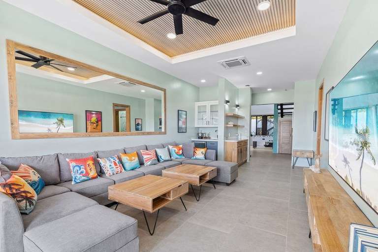 Villa Ballena was built to connect a polished designer home with the 'Pura Vida' beach lifestyle. The downstairs is devoted to family fun, featuring a professional grade foosball table, a 86-inch flatscreen TV, an oversized sectional for movie nights, and a wet bar with beverage cooler.