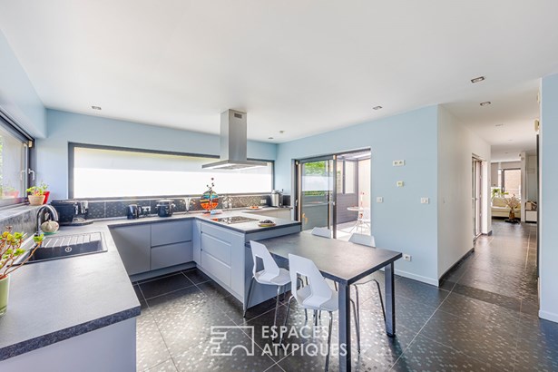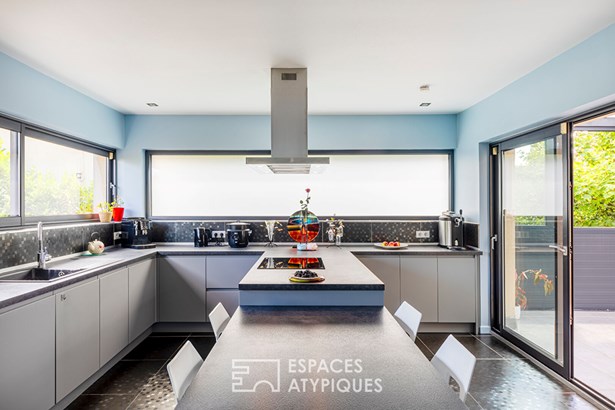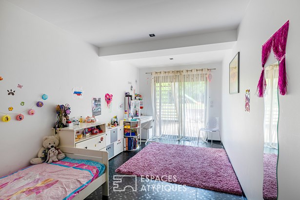 Far from the beaten track, this cubic house with clean lines and resolutely modern offers all the standards of the genre: flat roof, large bay windows, minimalist style, where raw concrete rubs shoulders with steel and glass.